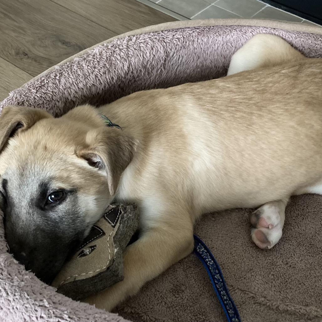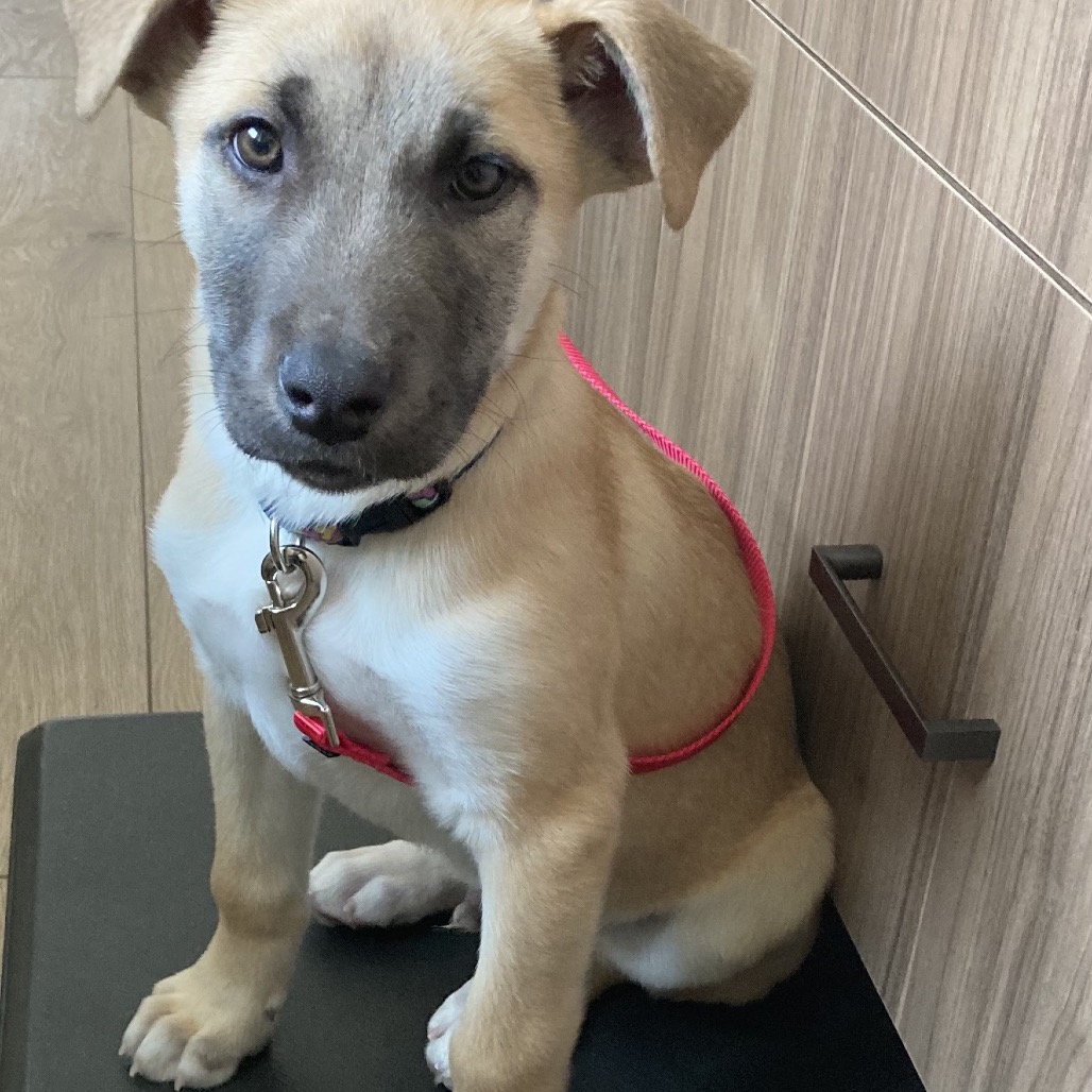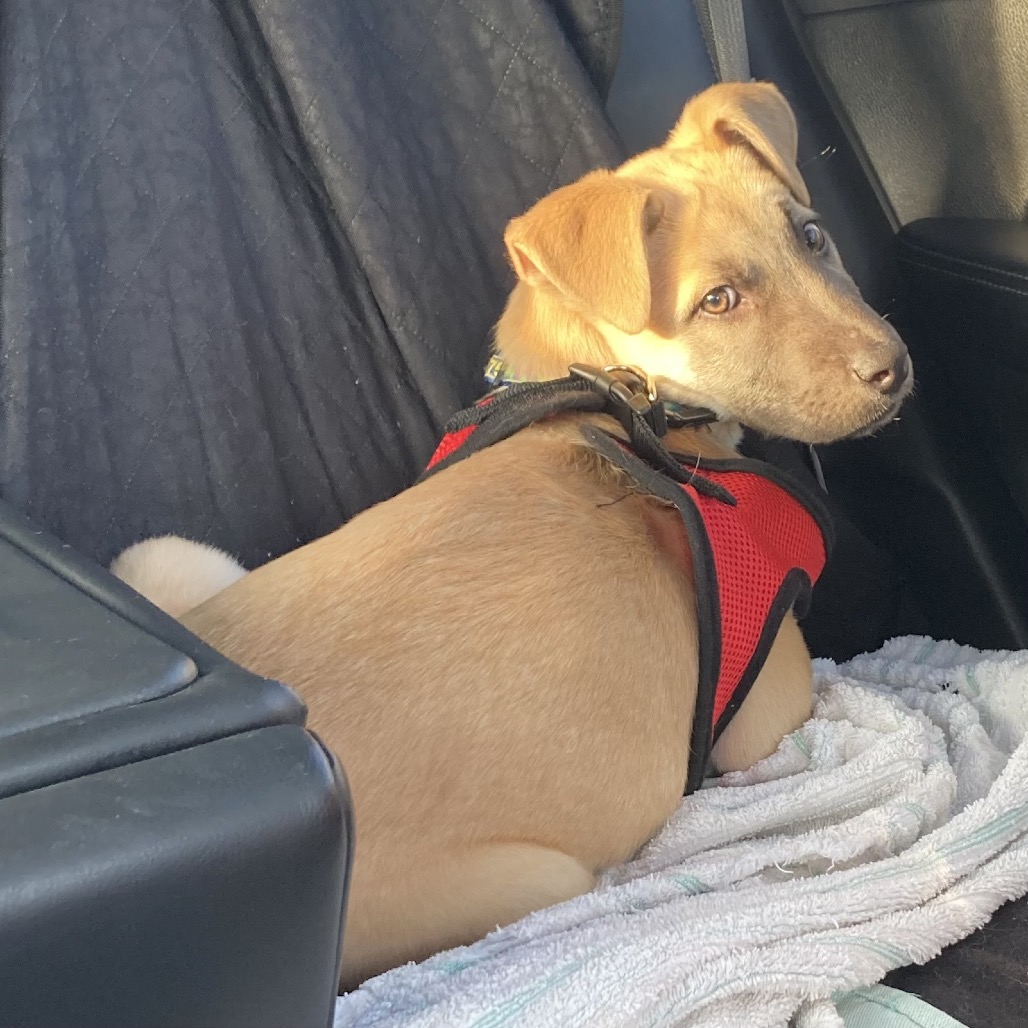 Hi, I'm Garret and am absolutely adorable! I've been settling into my foster home and house training is pretty easy as long as I am taken out regularly. I've also been motivated by the use of tasty treats to learn stuff like sit, down, and come. Sleeping in my kennel during the day and from 10:30-6:30 during the night are also in my wheelhouse. Going for car rides, walking on a leash and meeting new people are helping me gain confidence. I really like all the dogs I've met (unless they bark at me) but I haven't hung out with cats. I am young so with proper introductions, I think I would be fine with them.