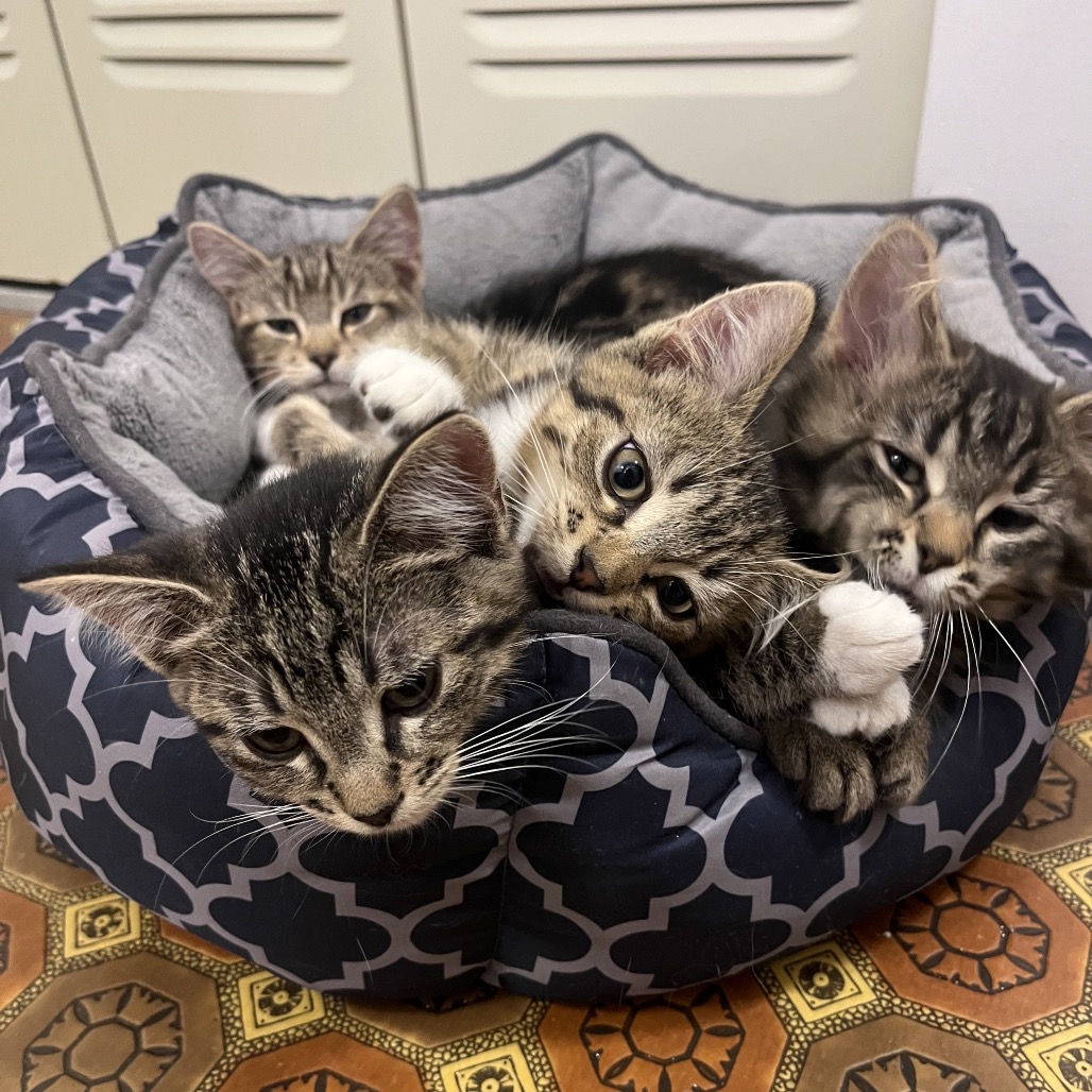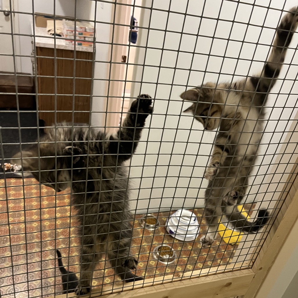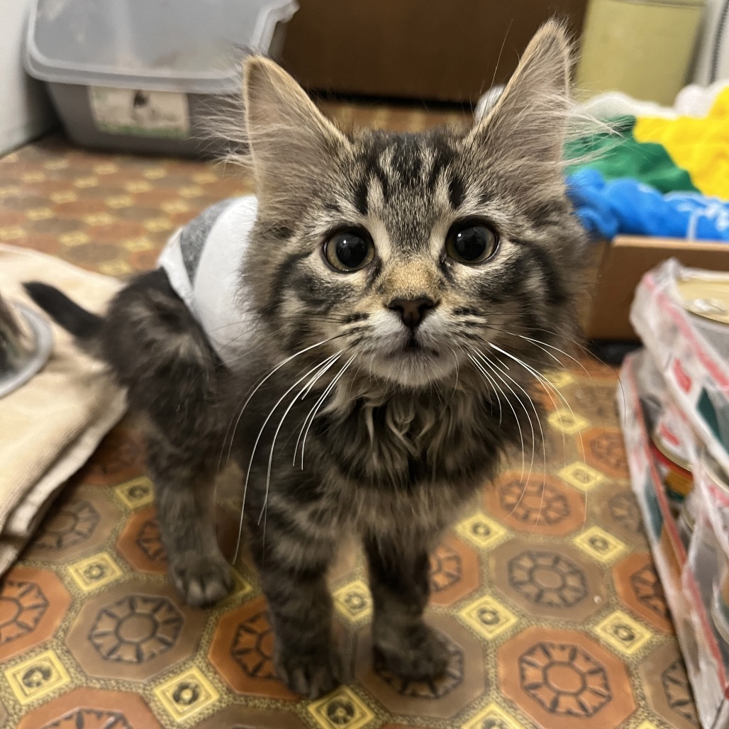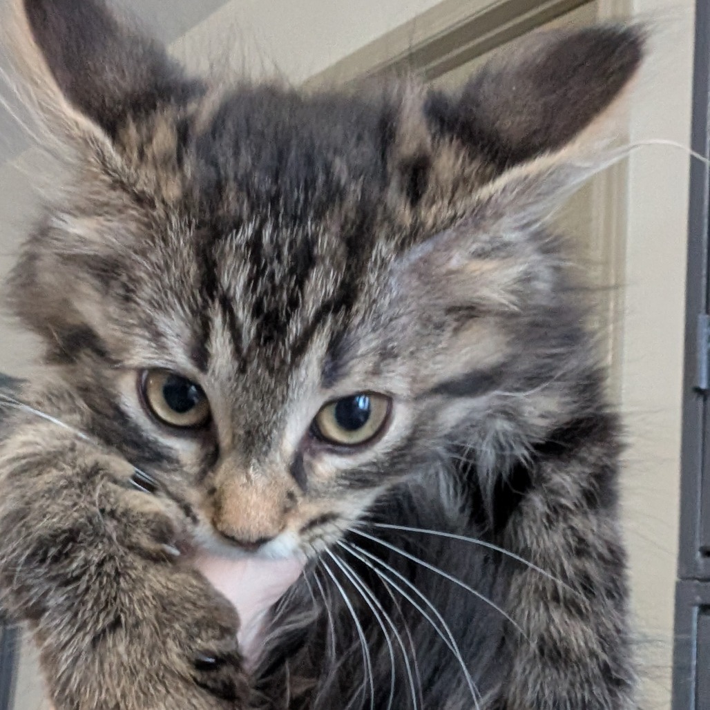 Hi, I'm Wool! You can tell me apart from my sisters by my beautiful, long hair. When I'm not asleep in the kitten pile I'm an independant explorer who likes to keep watch over my territory from a high vantage point. When I'm feeling playful, I like to chase my sister Silk around and once we wear ourselves out, you'll often find us snoozing together. The best home for me would be one where my people can give me lots of attention and brush me from time to time to keep me looking my fluffy best. I've never met a dog before, but since I got used to my foster family's cats I've been hoping to play with them in person instead of just through a gate.