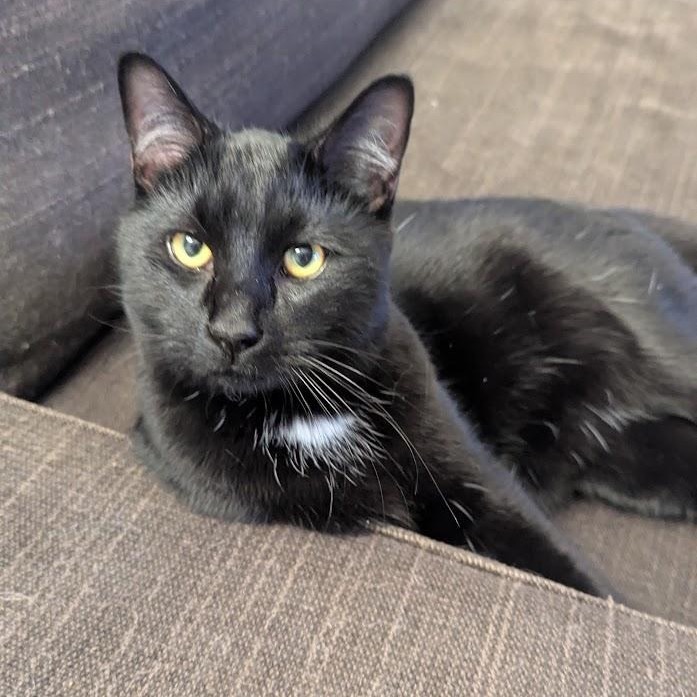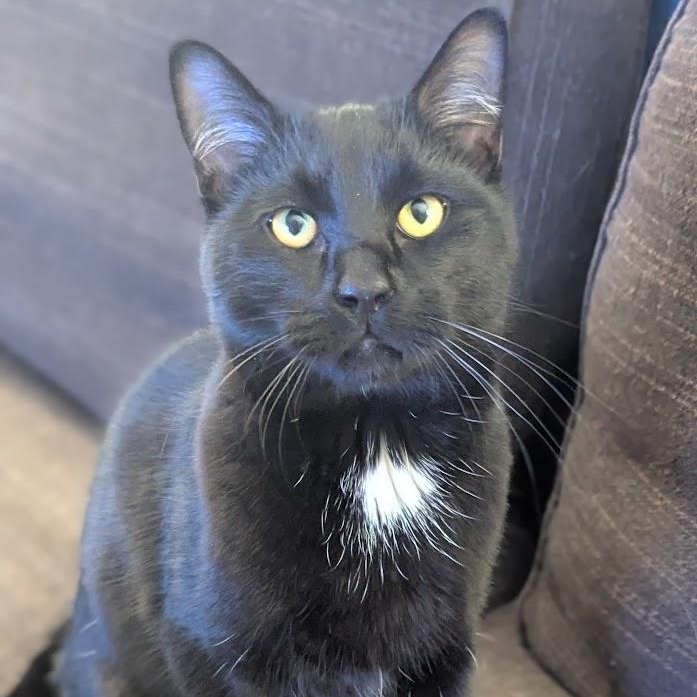 Hi, I'm Frodo! Do you want a hug? Cause I do! I'm a super sweet, chatty dude who can't wait to be your best friend. I've only been in my foster home for about a week, and I've made myself right at home. I can be a little bit timid at first, but once I'm comfortable I get pretty confident. I may be a big boy but I'm still a bit of a kitten at heart, and I love to run and play! But after that, I just want to snuggle and nap on your lap. At night I sleep on my foster mom's bed, sometimes on her pillow right next to her head. While I'd like to be adopted with my brother Korvan, I'd be fine on my own as well! I have no issues with the resident cat or dog, so if you have either that's okay! Do I sound like the perfect kitty for you? Then click the Adopt Me button!