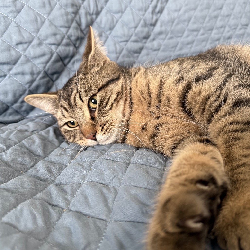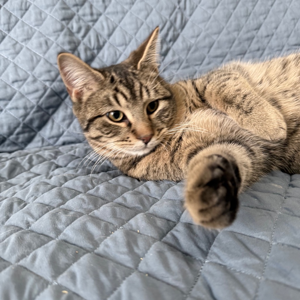 Azrath is a sweet, affectionate male cat who adores people and never turns down a chance for attention. Whether you're working, relaxing, or moving from room to room, Jasper wants to be right there beside you, offering soft purrs and warm companionship.