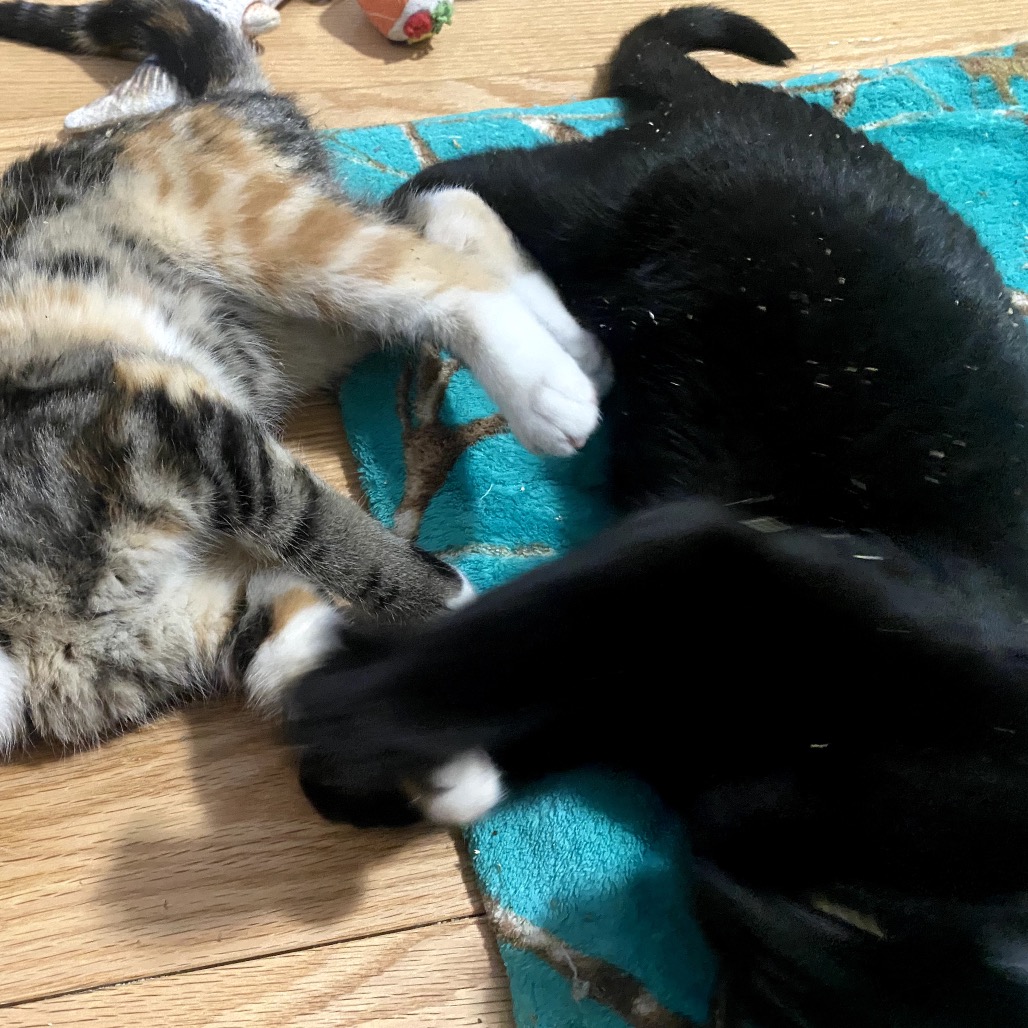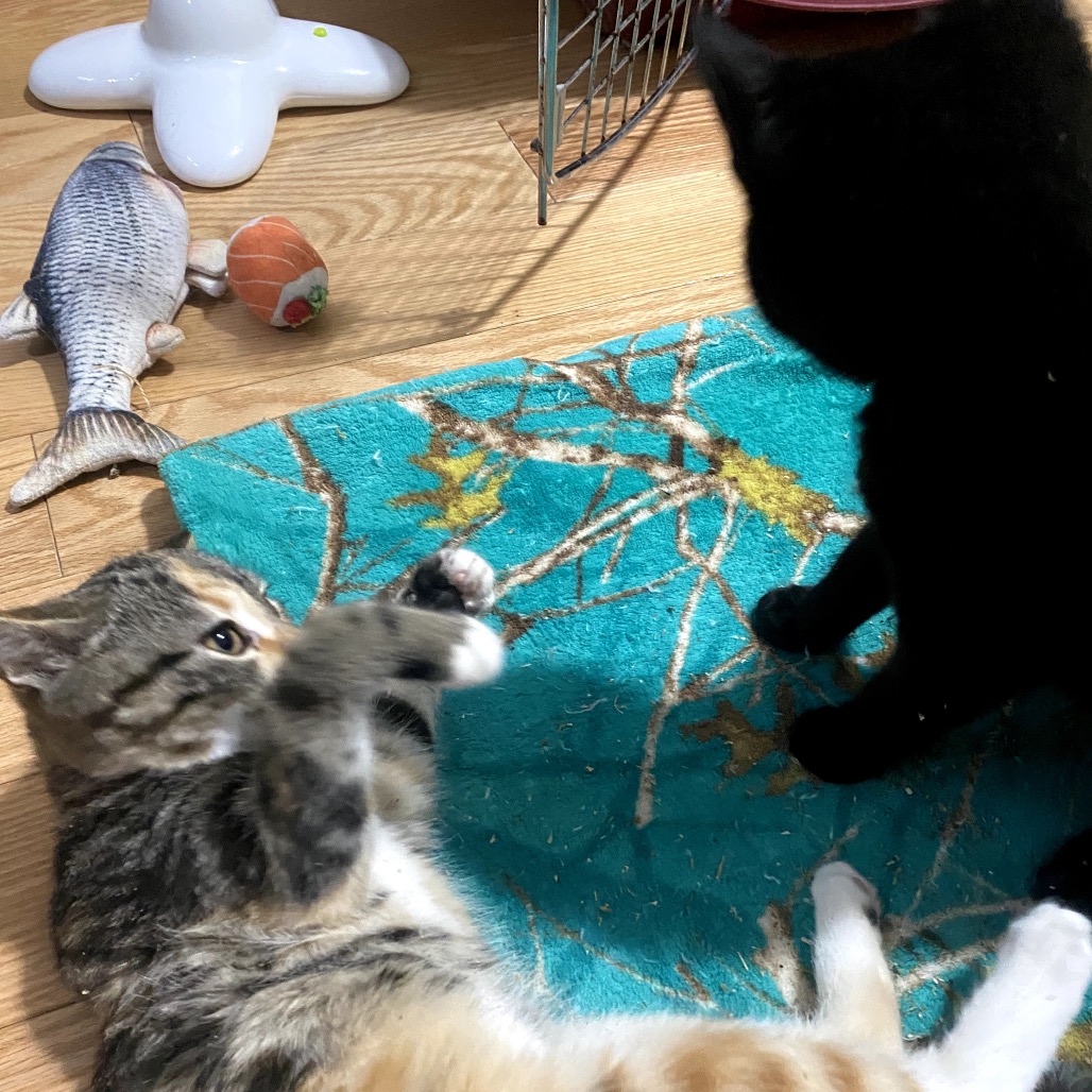 Hi, my name is Nirvana! I’m the smallest boy in our litter and have super pointy ears that make me look like a little lynx. I’m the most playful of my siblings and love to run around chasing fun toys. I recently tried catnip for the first time and had a blast (until my little sister beat me in our wrestling match). When I’m not playing with toys or my siblings, I like to cuddle with my people and am very affectionate. Even though I have plenty of energy, I’m pretty laid back for my age and am good about not considering hands as toys. I’d love a home that’s happy to put in lots of time playing with me, and just as much time cuddling.