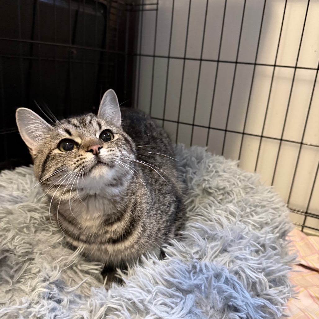 She adores being close to her humans and has a warm, welcoming nature that makes her easy to love. Mochi is also wonderfully good with other cats, happily sharing space and companionship with feline friends. Her peaceful energy and social ease make her a lovely addition to multi-cat homes.