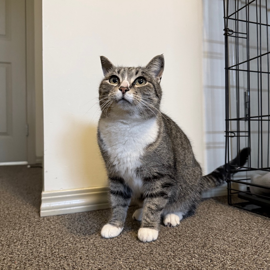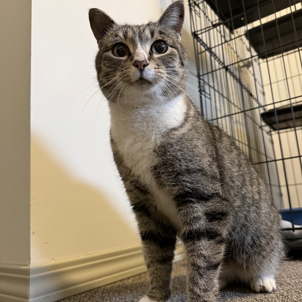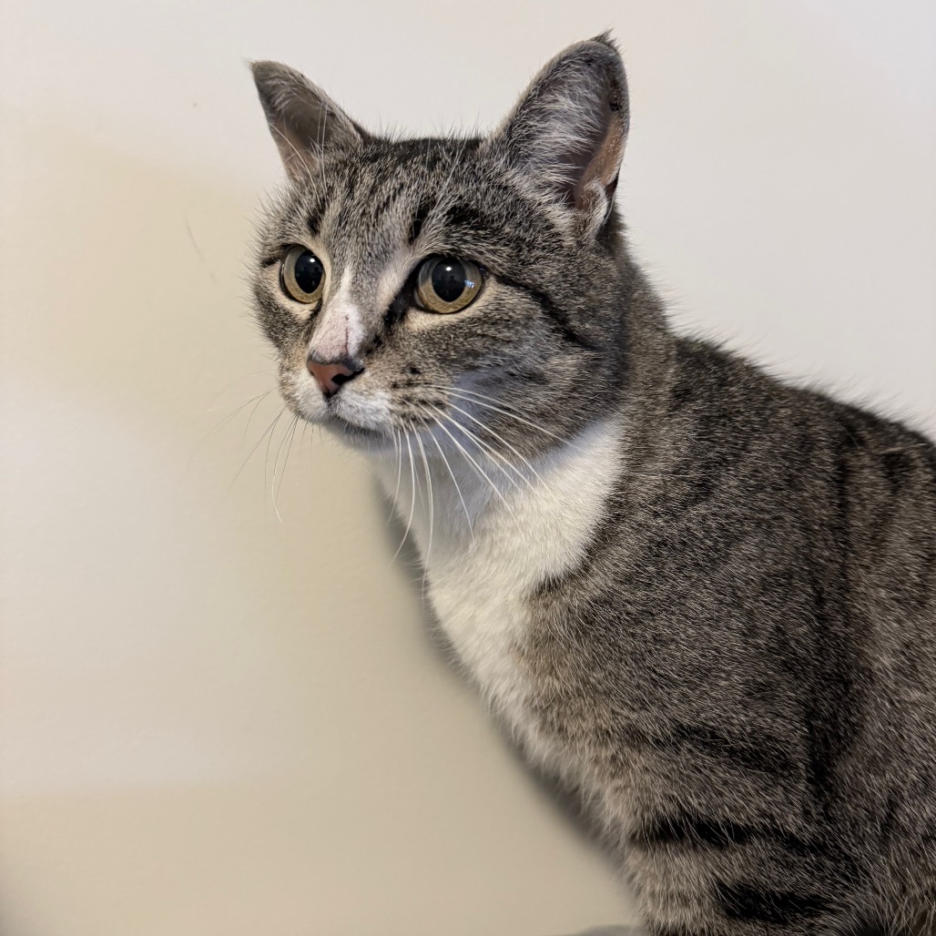 Meet Marla, a friendly and affectionate female tabby with a warm and inviting personality. This beautiful girl loves being the center of attention and seeks out gentle pets, cozy lap time, and any opportunity to soak up affection. Her soft tabby markings and bright, expressive eyes make her a real standout, and her sweet nature wins over everyone she meets.