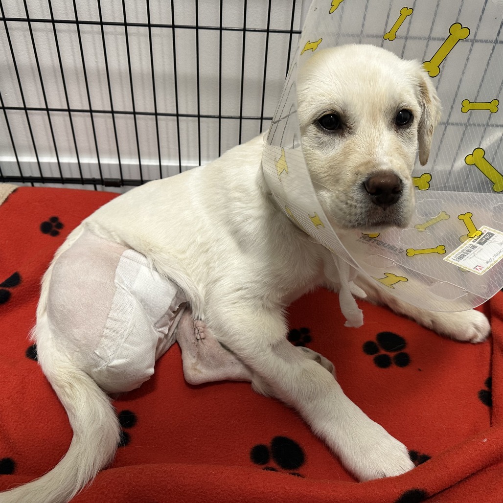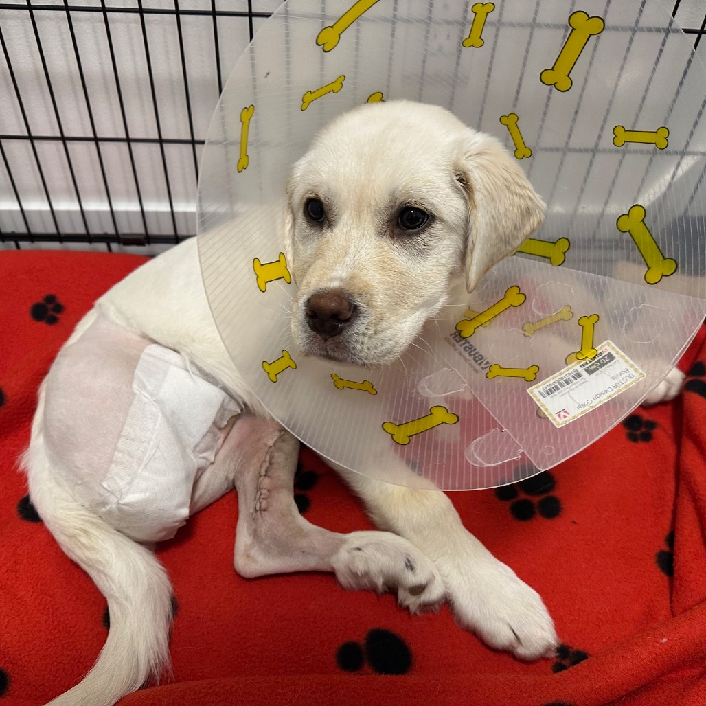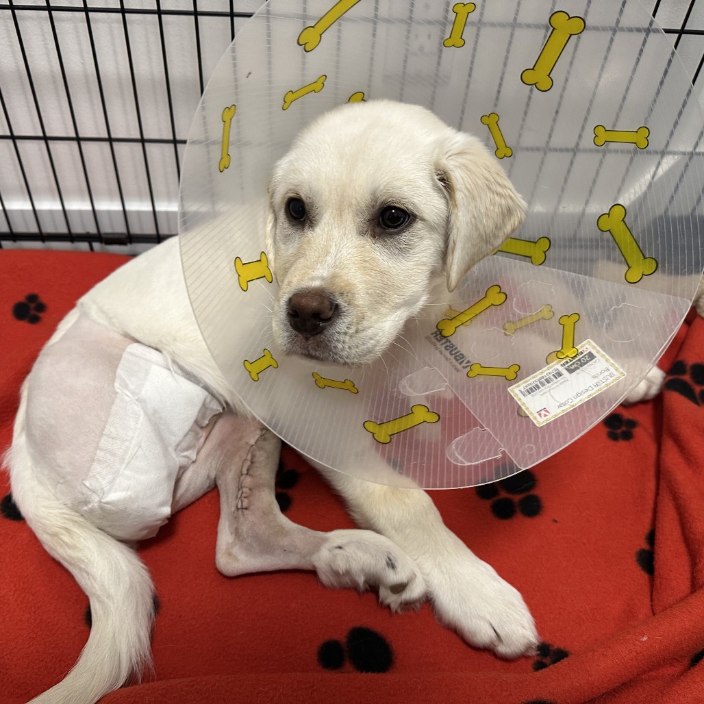 A couple of weeks ago, life got a little tough for me. Some very kind people from SCARS found me and brought me to the emergency vet. When I woke up, I learned that my right hind leg had been removed to save my life. My left hind leg wasn’t feeling great either, but luckily, I got to keep it. I’m still healing and not quite ready for adoption just yet—I’ve got some important recovery and bone healing to do—but I’ll be available very soon!
