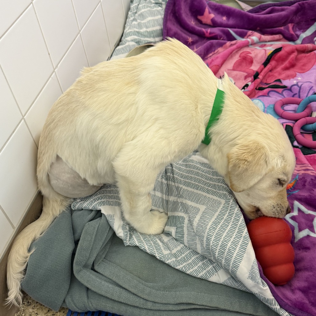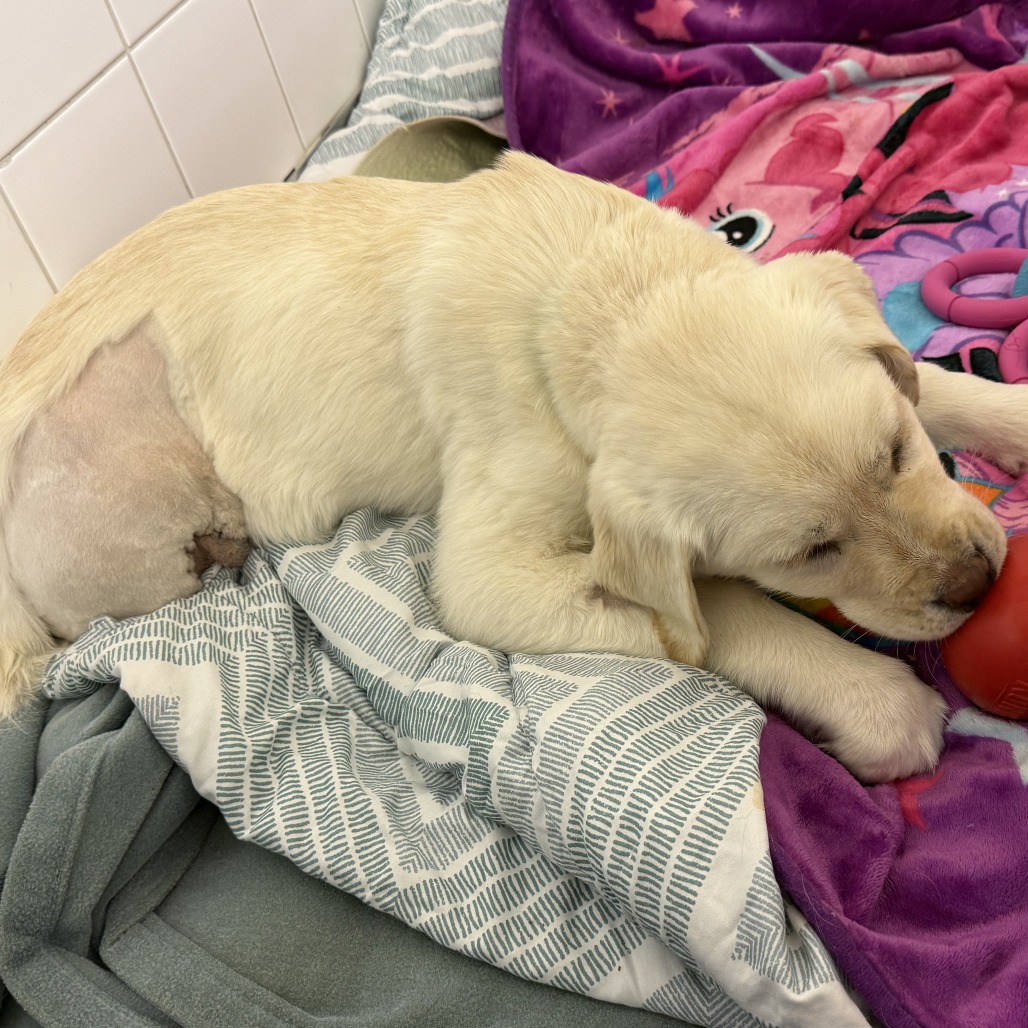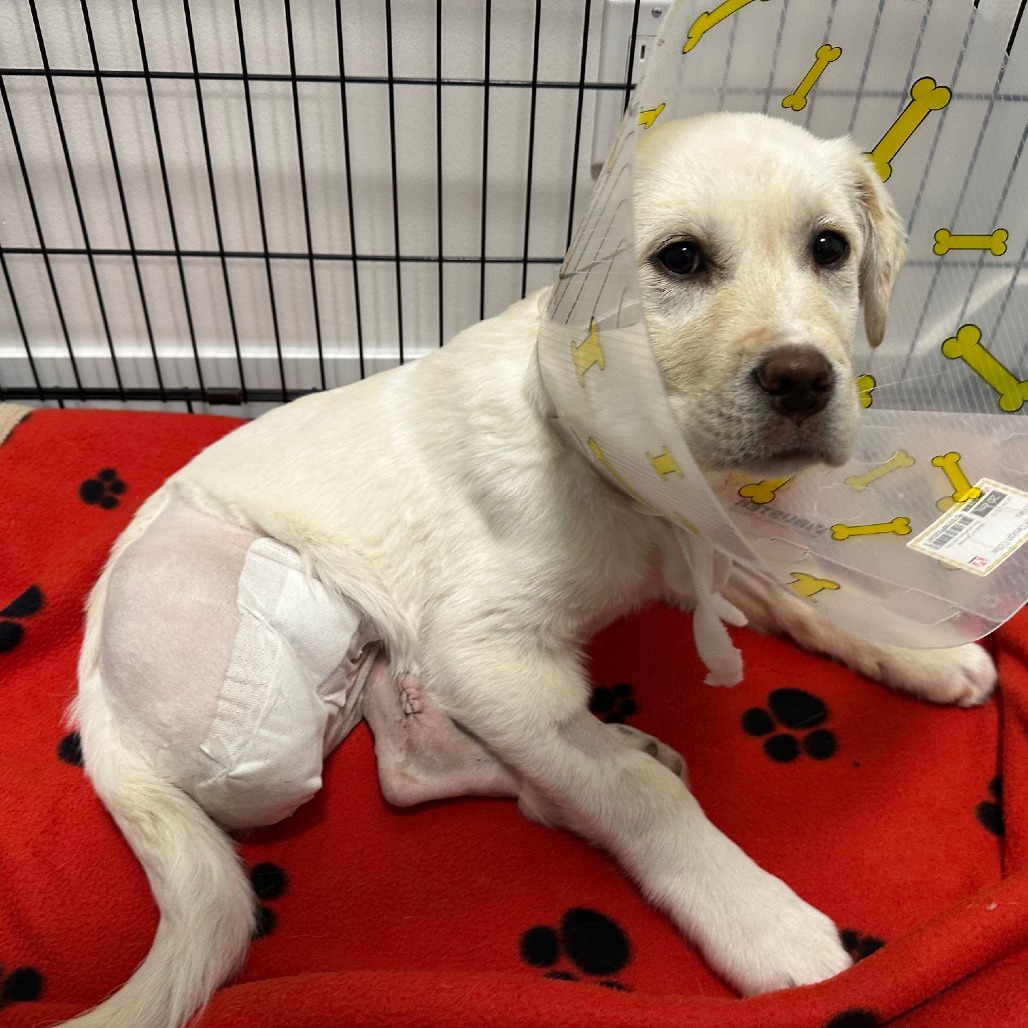 A couple of weeks ago, life got a little tough for me. Some very kind people from SCARS found me and brought me to the emergency vet. When I woke up, I learned that my right hind leg had been removed to save my life. My left hind leg wasn’t feeling great either, but luckily, I got to keep it. I’m still healing and not quite ready for adoption just yet—I’ve got some important recovery and bone healing to do—but I’ll be available very soon!