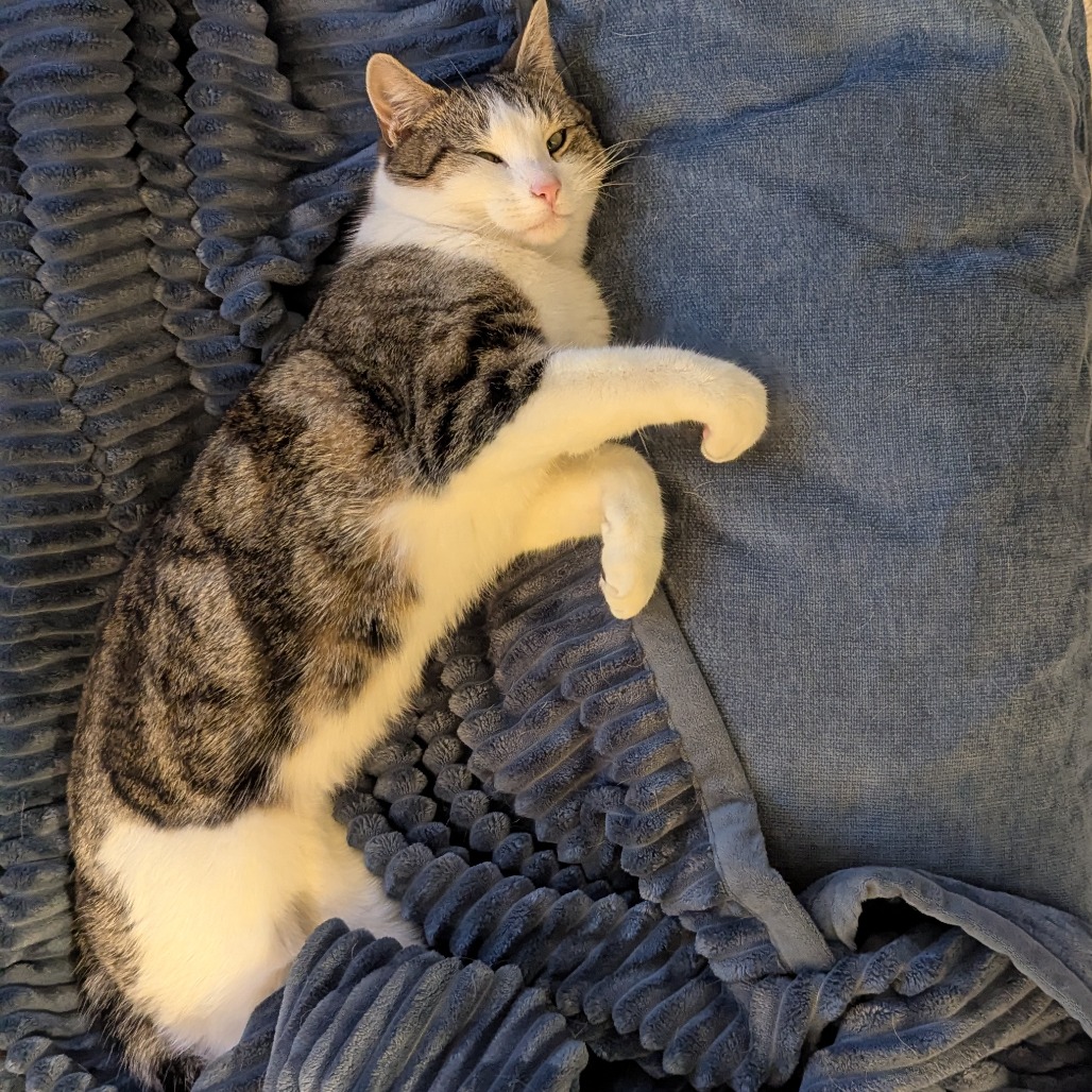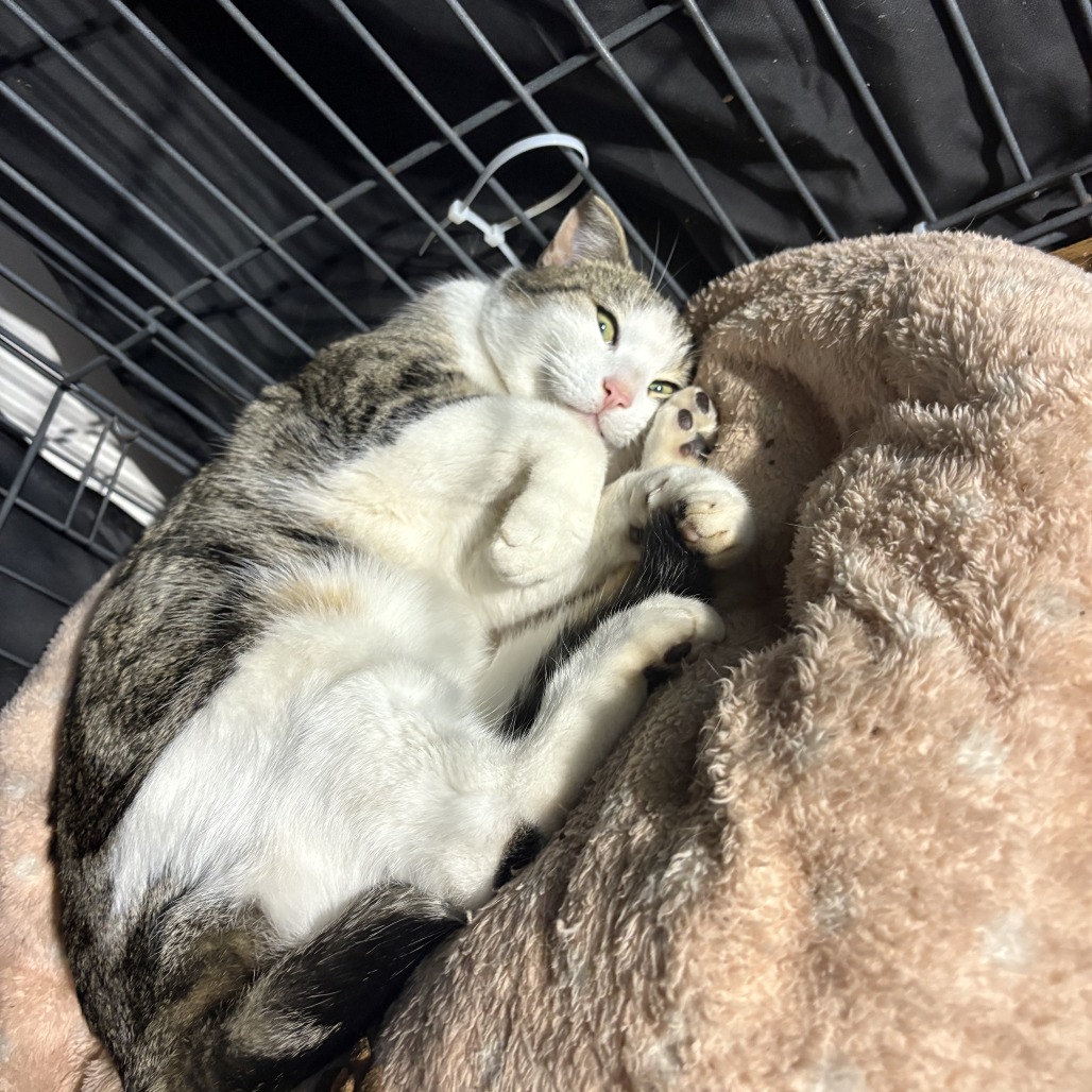I’m also very food motivated (treat bag crinkles are basically my theme song), so teaching me new tricks or helping me settle in will be extra easy. My fur is silky soft, my purrs are loud, and my cuddles are top-tier—perfect for holiday movie nights and all the cozy moments to come.