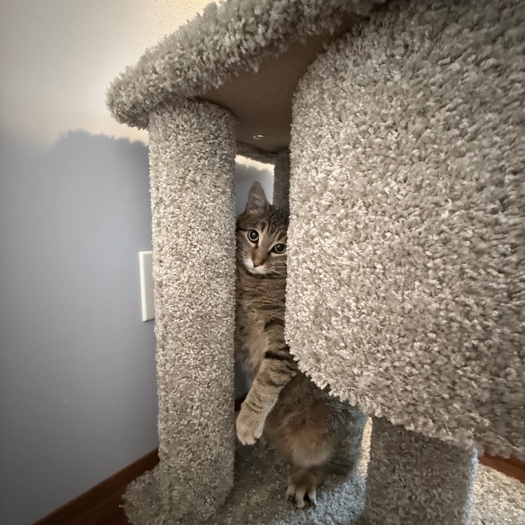 Hickory is the kind of cat who prefers gentle companionship over chaos. He enjoys observing the world from a cozy perch, taking in the sunlight, and staying close to the people he trusts. Though soft-spoken, he expresses his affection through slow blinks, soft purrs, and those tender head bumps that say more than words ever could.