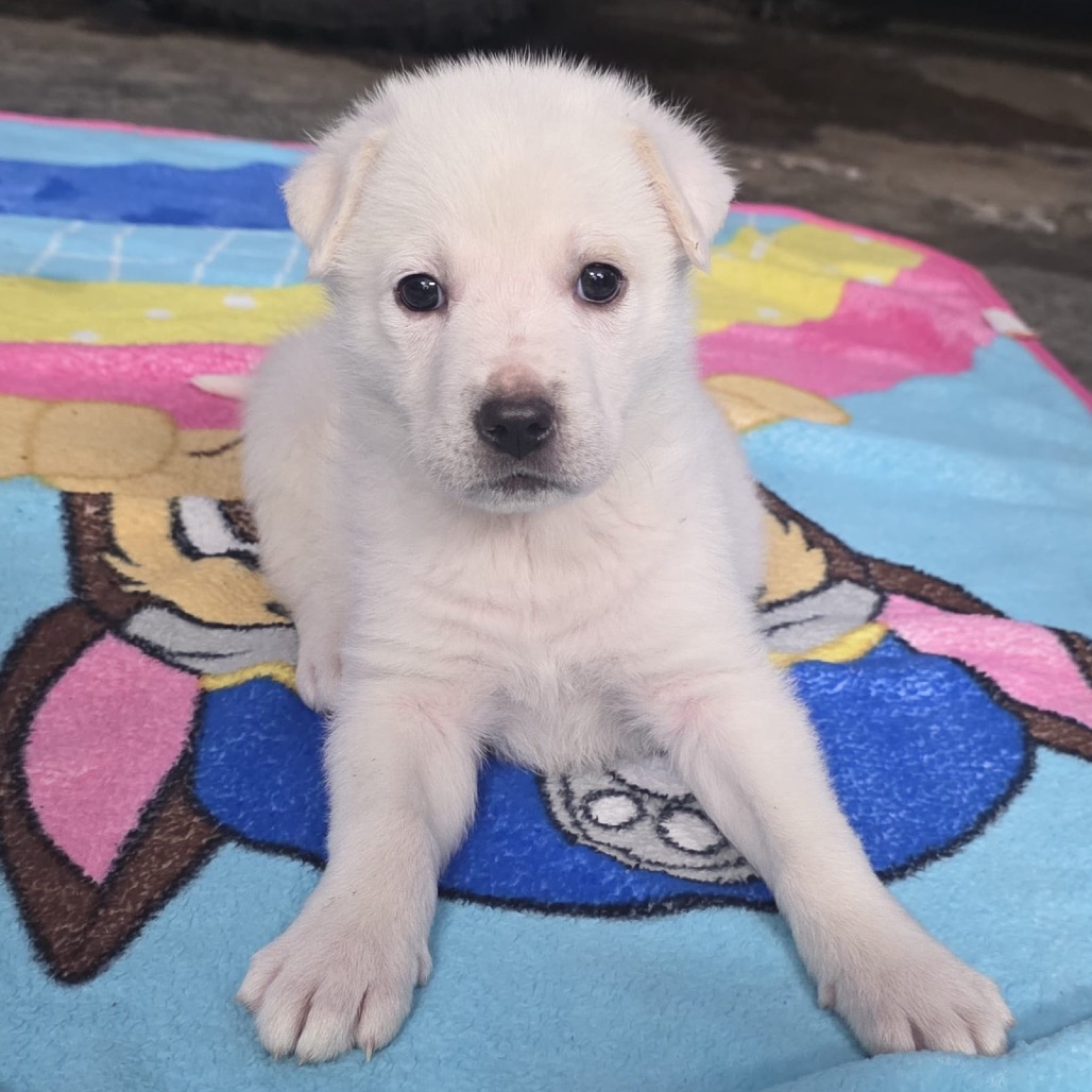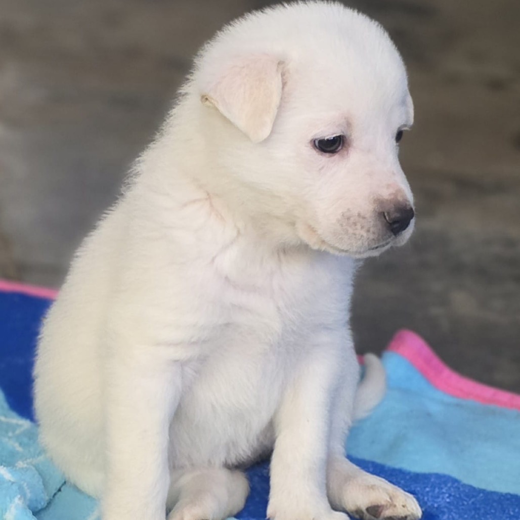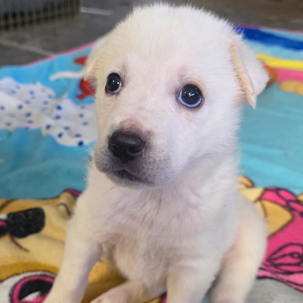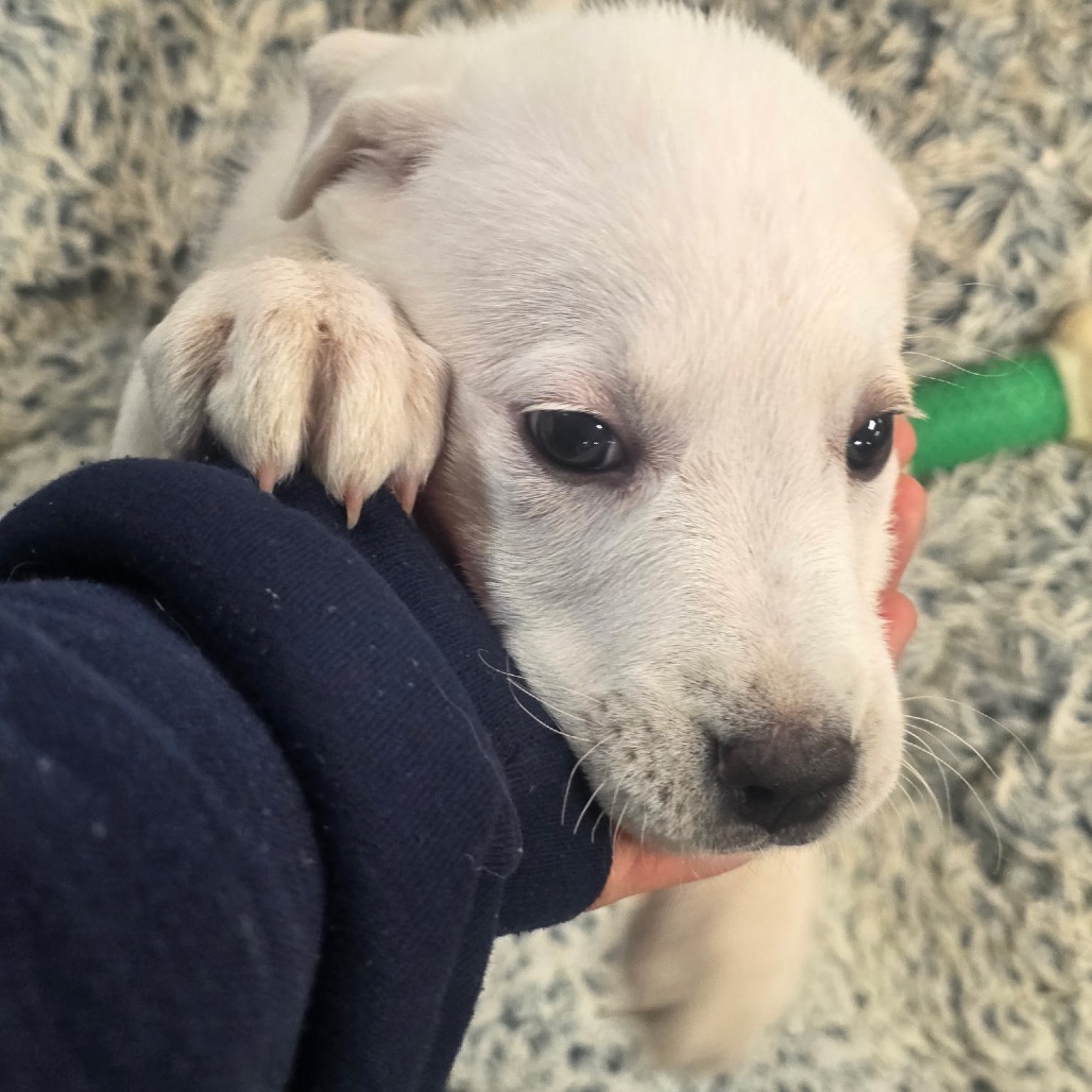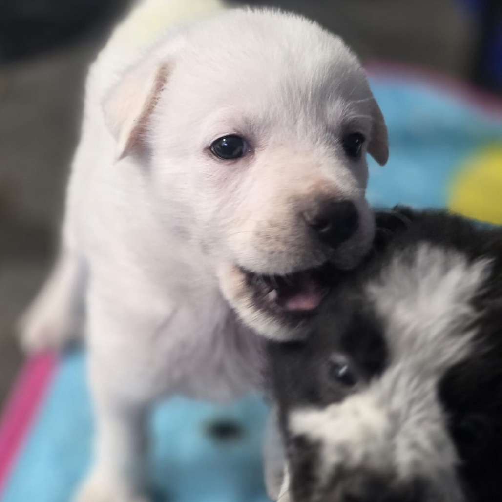 Hi! I'm Icy, the puppy with a heart full of curiosity and paws always ready to play! My life started off really scary and I didnt have my mom nearby for comfort, however all of these nice people took care of us and im learning to trust humans more all the time! Every day, I explore my little world with bravery and a bit of shyness. I love cuddling up after a fun day of tag and tug of war with my siblings. I enjoy the presence of cats, dogs, and tiny people, i just want them all to play with me, once i've had a chance to warm up! If you're looking for a loyal friend who promises endless fun and affection, I'm your pup! Let's make wonderful memories together