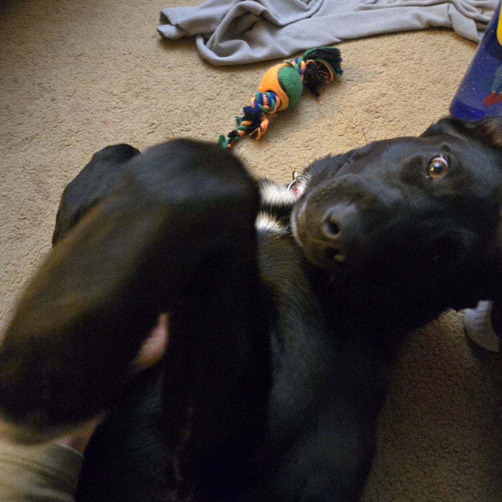 Milo originally came from one of our northern pounds, and while we don’t know much about his life before that, we did meet him at the task force spay/neuter clinic back in October so we know his age is right on the dot!