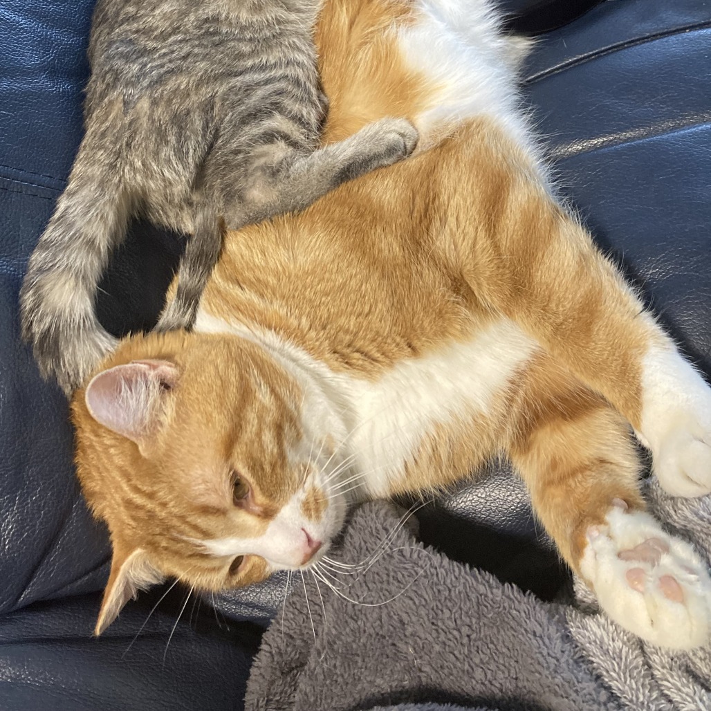 I love meeting new people and I get along great with other cats. I am gentle with kittens and I give any cats that need space their room. I have met a few dogs now and I am a little cautious around them... I'm not used to being smaller than my fellow animals. That said, if there is time for me to warm up to a dog, I am friends with them too! I am also happy with kids, even littles - I am very chill about being picked up, carried around, pulled at, etc..... it all counts as attention to me, and I love it.