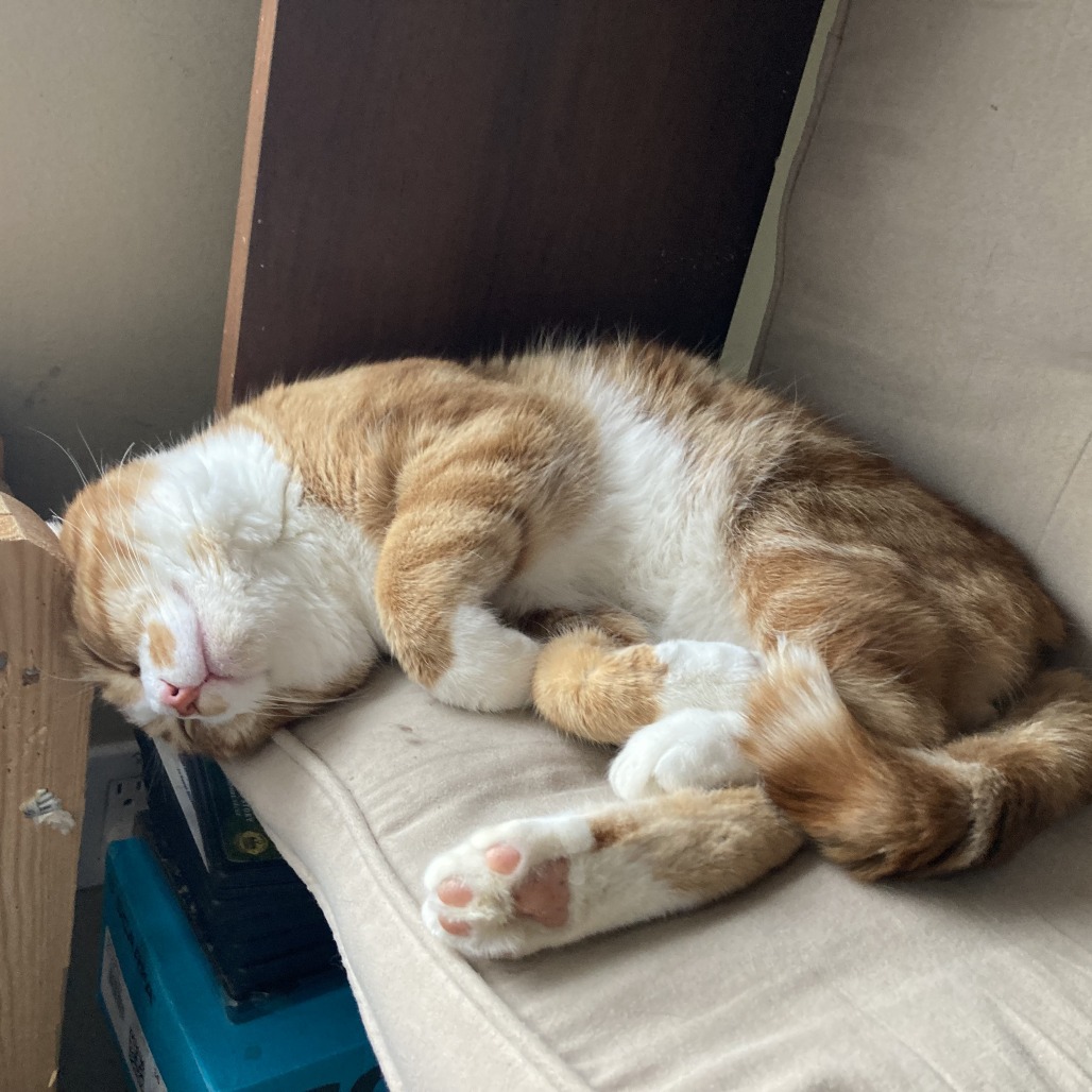 "My name is Chuck Norris, but don't let that fool you - I'm a lover, not a fighter! I'm a big boi for sure (close to 13 lbs) but I get along with even my tiny foster sister. I just want your attention!! I love cuddles and pets in any form. My current move is to follow folks into the bathroom and jump up while they sit on the toilet... you might as well be petting me while you're there! I will gladly sit in your lap while you are working, and I am great at helping you take breaks so you can pet me... you're welcome! My foster fam says I'm one of the most affectionate kitties they've met.