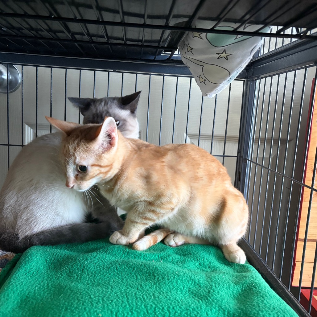 We are very shy kittens that would benefit in a home where there’s some patience, time and love. We can be picked up but we just don’t trust people yet!!! We are looking for a forever home as a duo, so we can work on our skills and get super brave together!! We are so cute, so awesome and we will have so much love to give but will you give us some time?