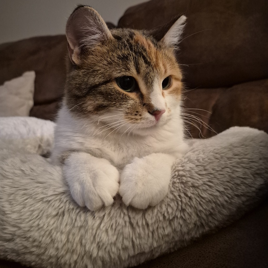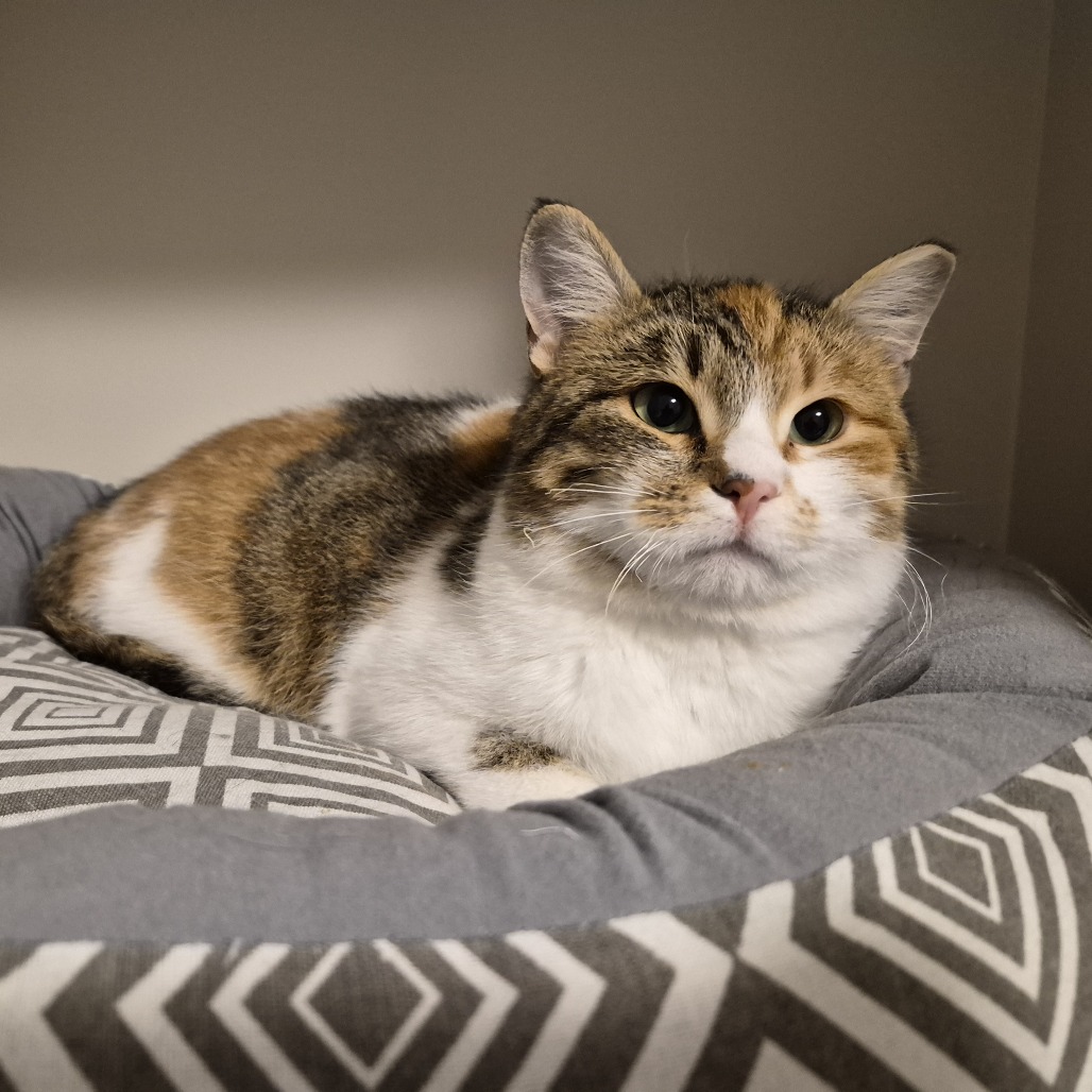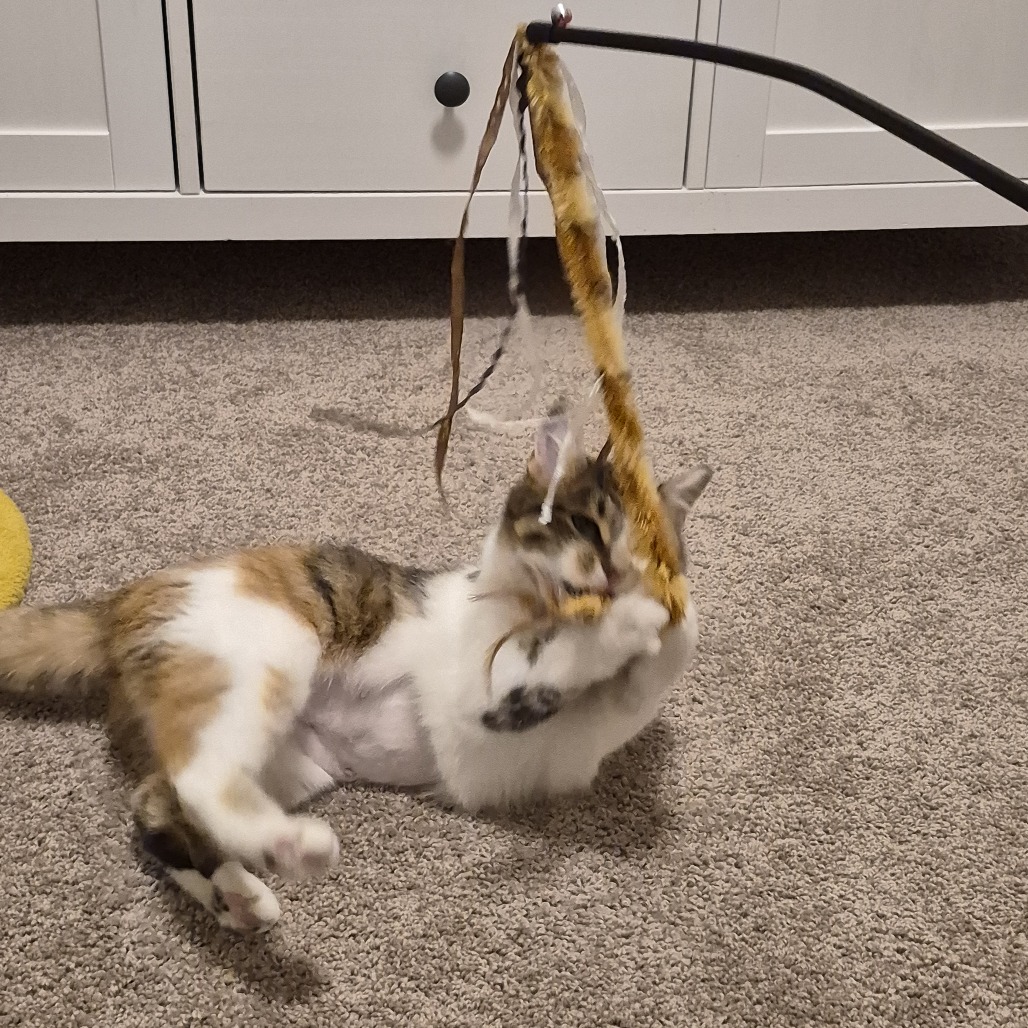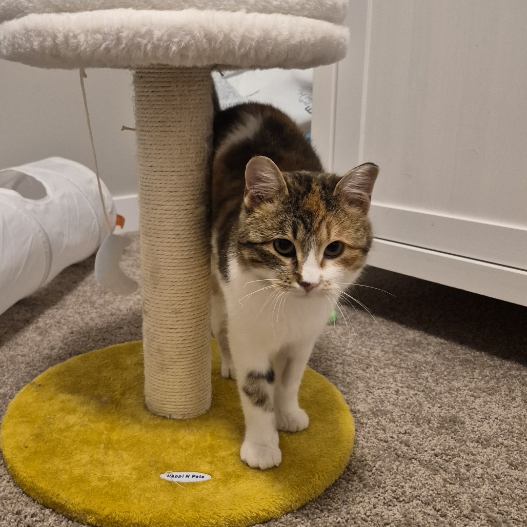 My name is Papaya. I am a striking little girl. I take some time to warm up and get used to new people but once I am more comfortable I can purr up a storm and enjoy some pets. I have realized that hands aren't going to hurt me and have gradually allowed my foster parents to give me more and more attention. I even enjoy some scratches when I am eating and of course I have to knead the floor to portray my happiness. It is a learning process and everyday I am trusting more and have continued to become more outgoing. I have not found a toy I don't like..... These toys are amazing. I can't get enough of them. I pounce, roll and chase for hours. I haven't explored much on furniture, I am too busy playing. I am very good at using my litterbox and covering everything so well you can hardly tell I was in it! So stealthy I could be a spy. I have seen the other animals in my foster home and I am very interested to meet them but we are doing a slow positive introduction. There are some snacks I really like and will "wabam" my paw on them to make sure they don't get away before I munch on them. Don't I sound perfect? Hit that adopt me button and lets meet.