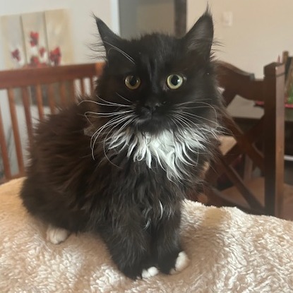 Hi I'm Tux. I'm a gentle, playful kitten with a soft heart, I can be a little shy at first, but once I feel safe, my fun and curious personality really shines. I love chasing toys, playing with my siblings, and going on little adventures around the house.