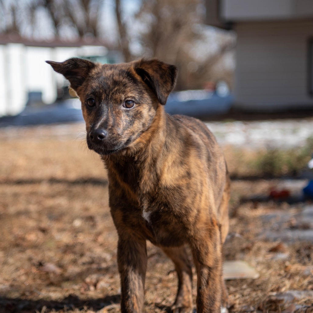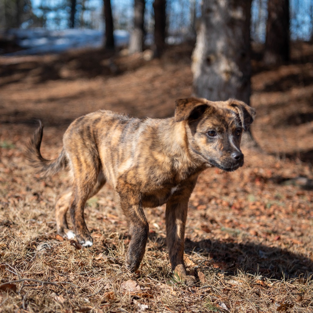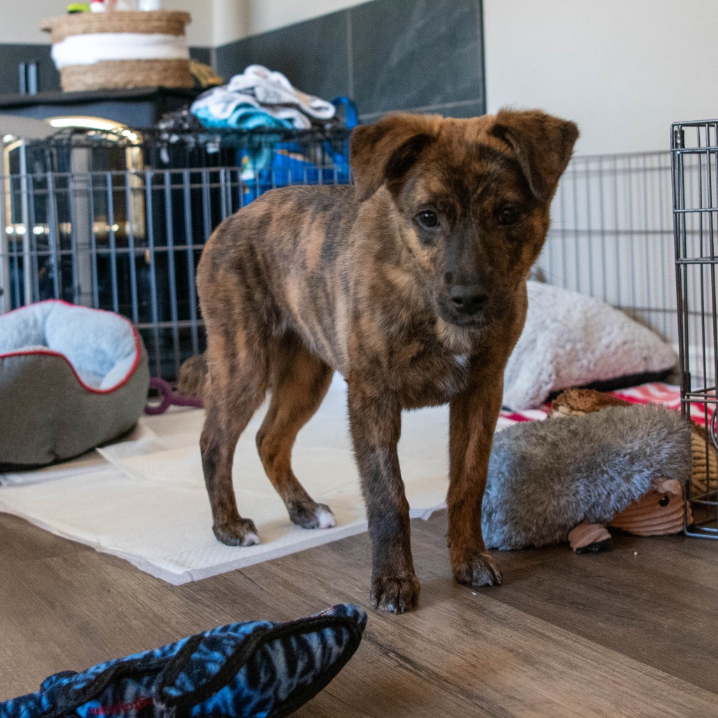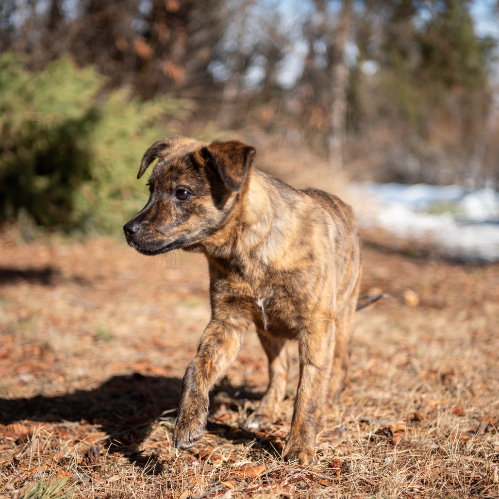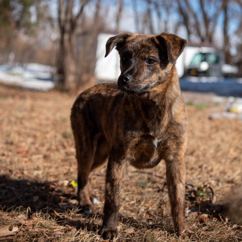Eos is a loving and affectionate puppy who enjoys being close to her people, but she also loves playing with other dogs. A home with a calm, friendly resident dog would be especially beneficial, as another dog can help provide confidence, companionship, and help them learn the rhythms of the household.