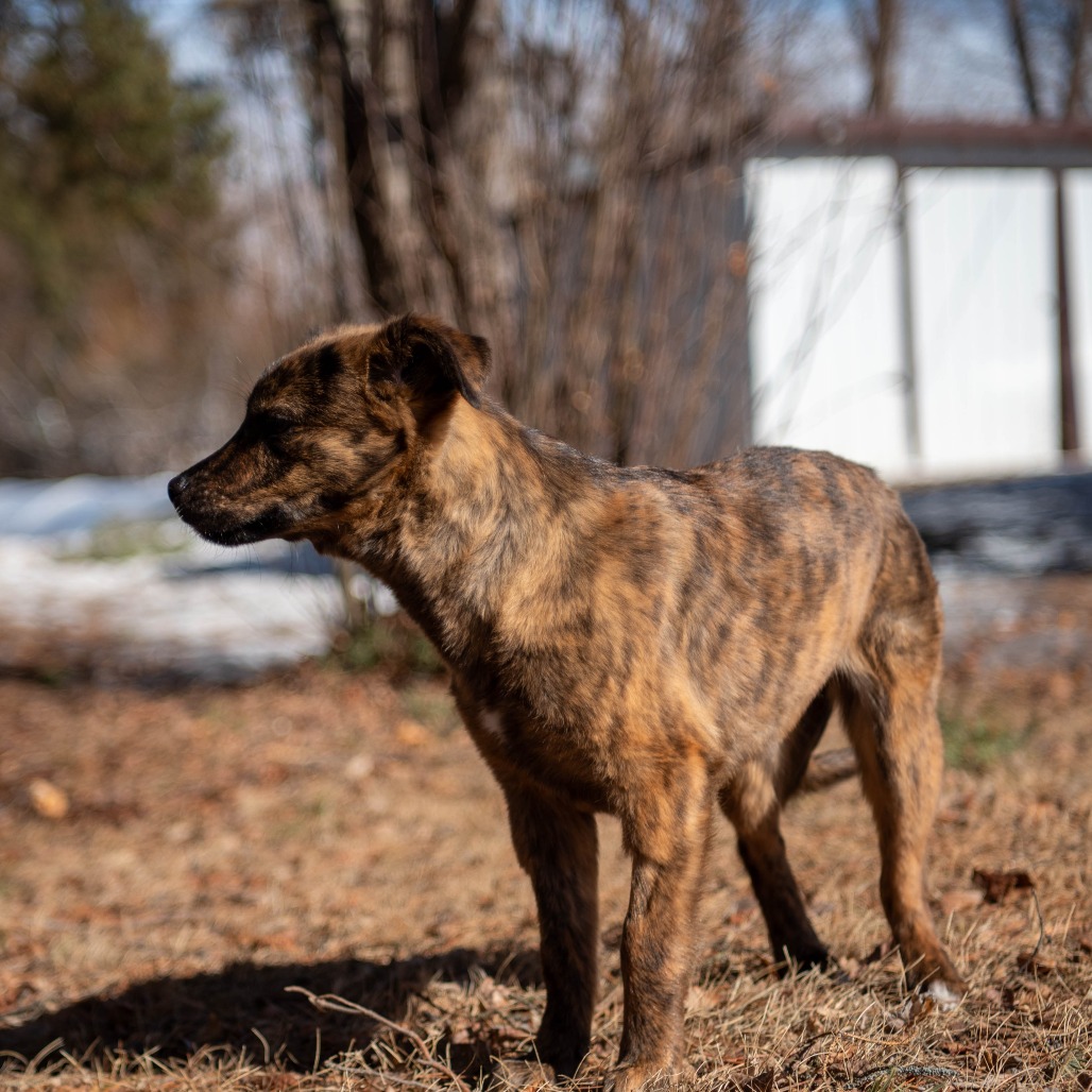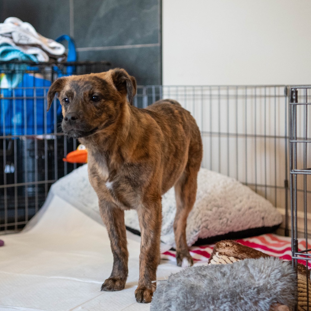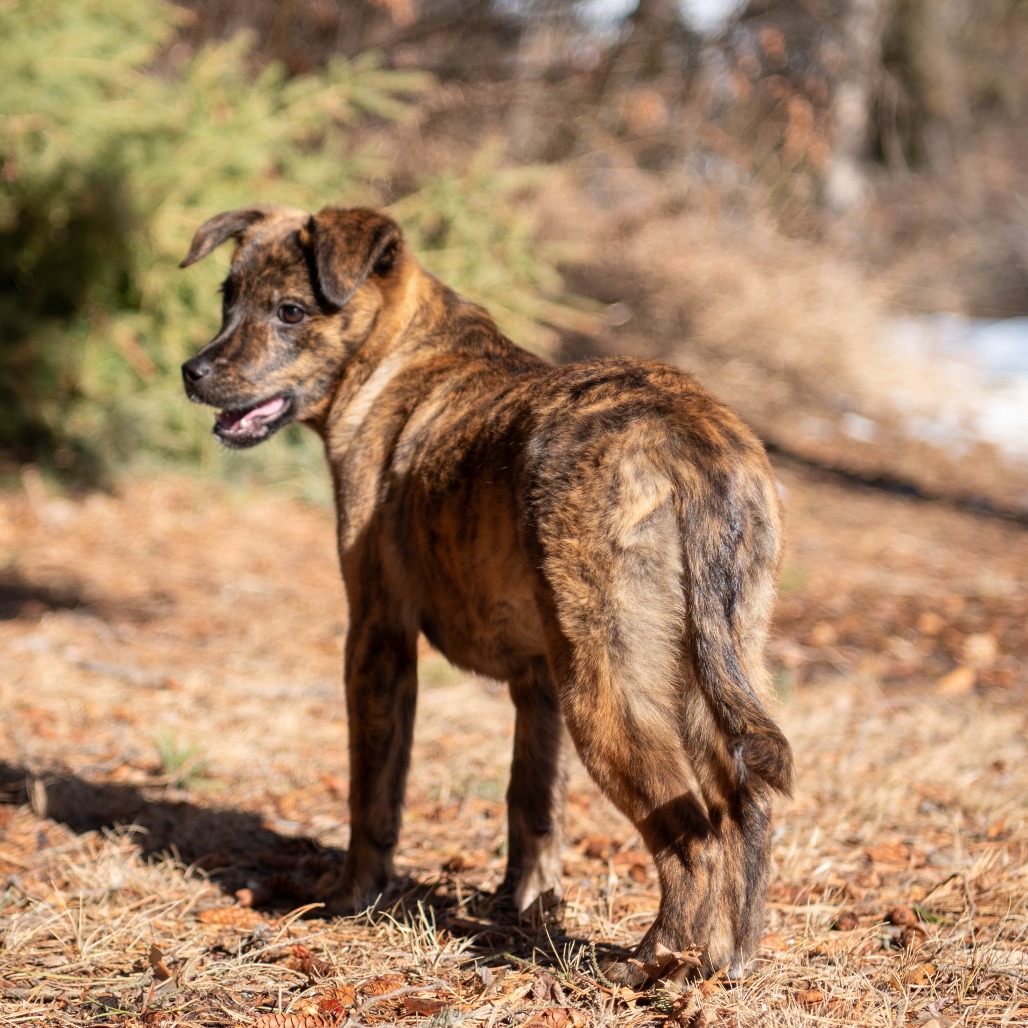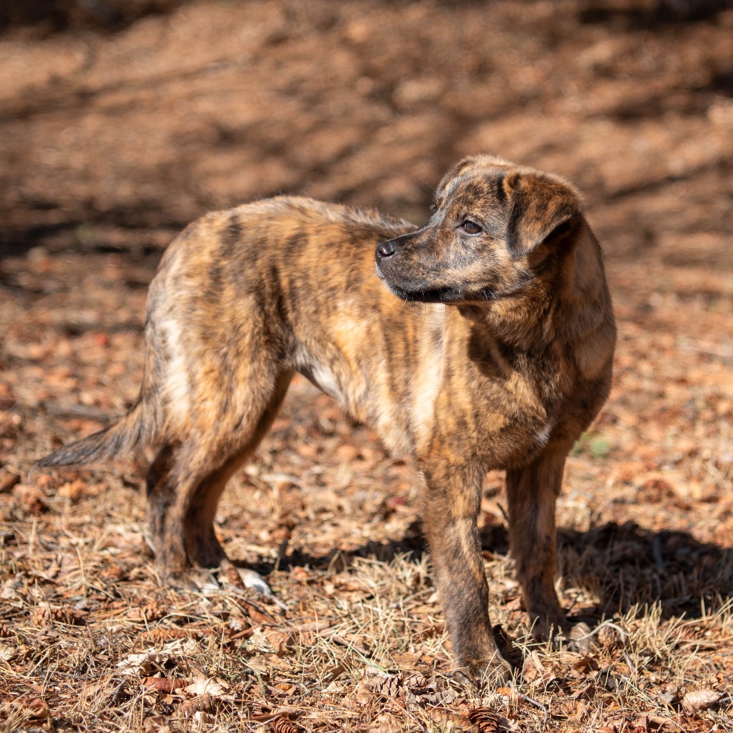 Eos is a loving and affectionate puppy who enjoys being close to her people, but she also loves playing with other dogs. A home with a calm, friendly resident dog would be especially beneficial, as another dog can help provide confidence, companionship, and help them learn the rhythms of the household.
