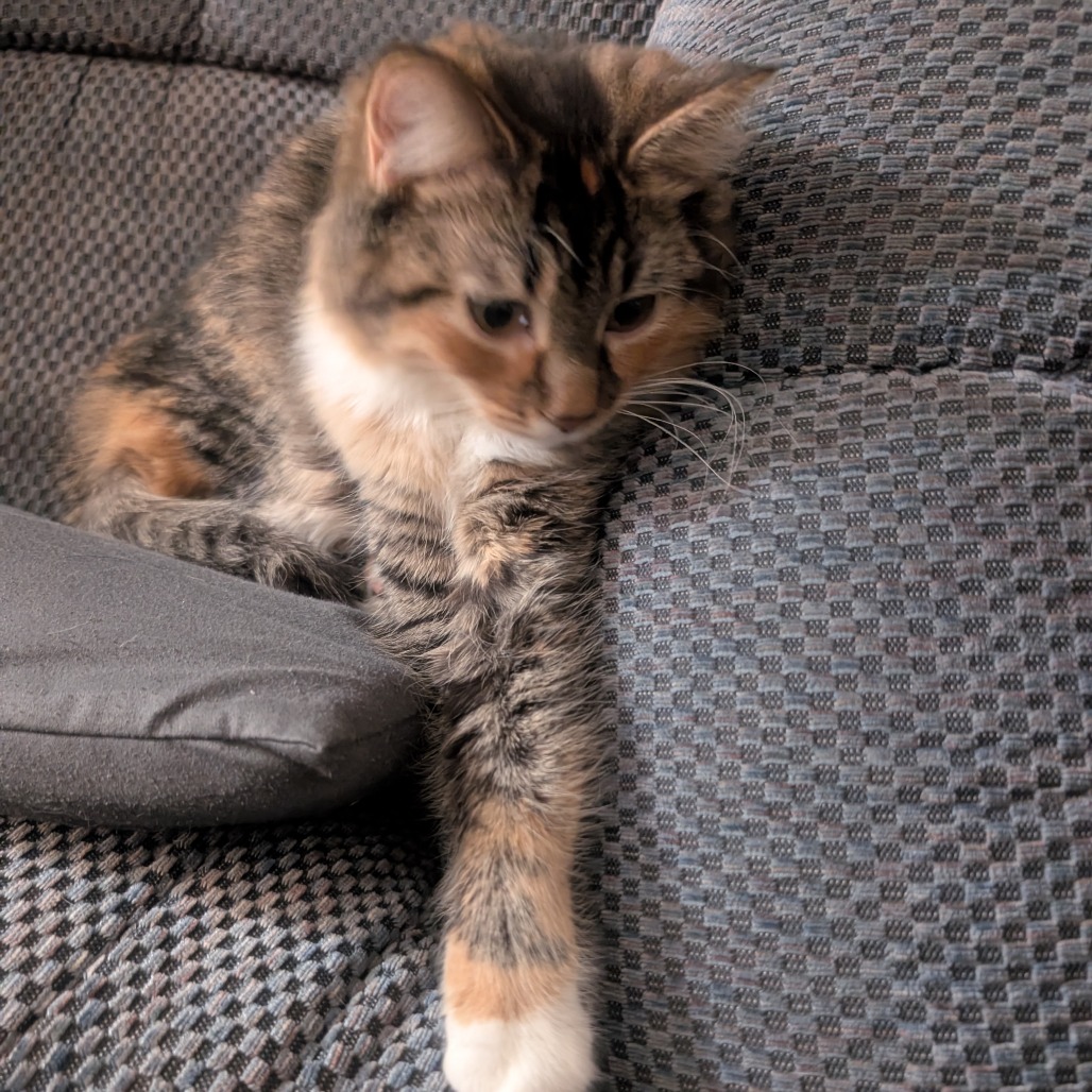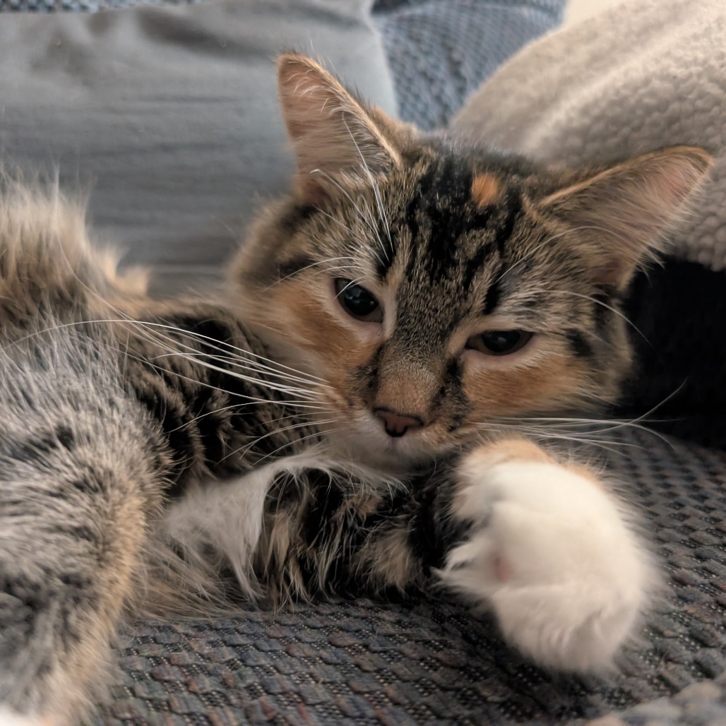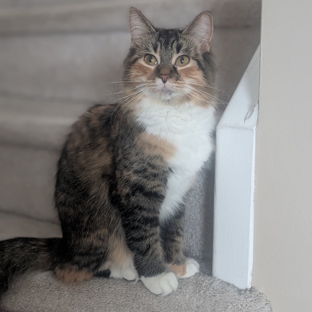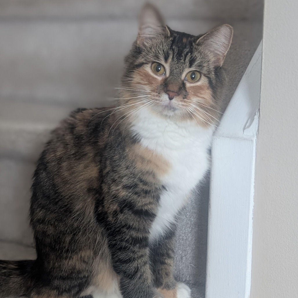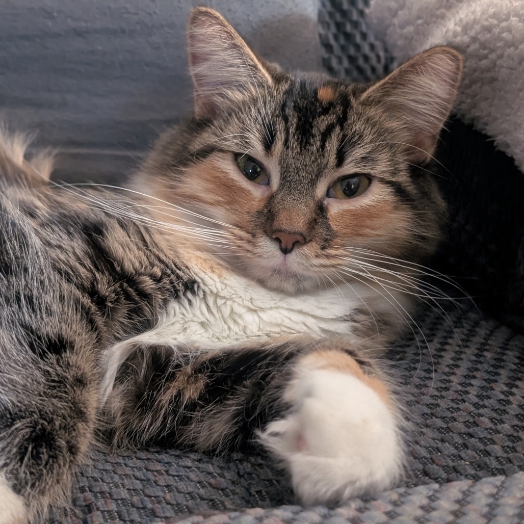 Hello everyone, Loca here. I am an immensely sweet girl looking for the right lap to cuddle up to. I have luxuriously soft fur and a have excellent manners. I use the litter box like a champ and I don't bother the Christmas tree. I just want to be by you at all times. All you have to do is look at me and I start purring. My ideal day is to just cuddle in your lap. I am good with the dog here and have met other cats so I should be the perfect new house mate. Don't I sound amazing? Put in that application today and lets meet.