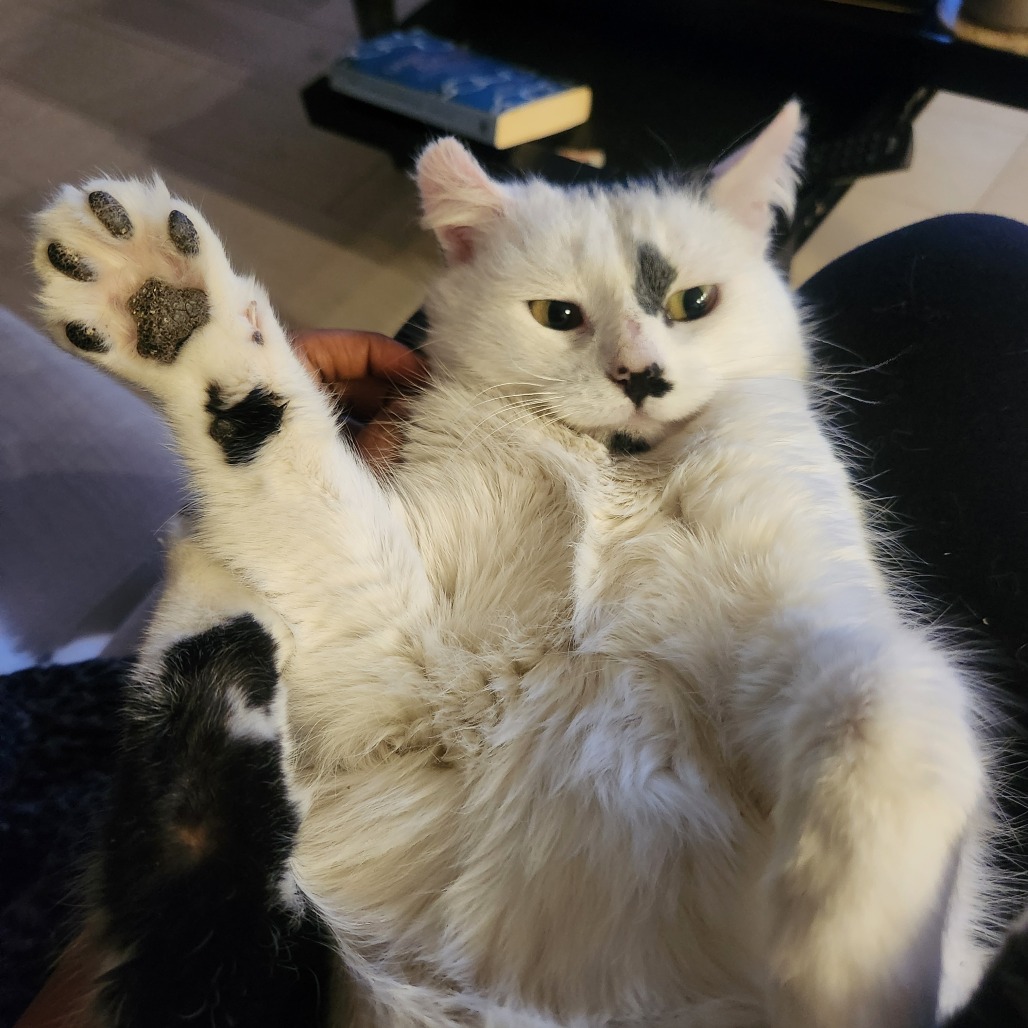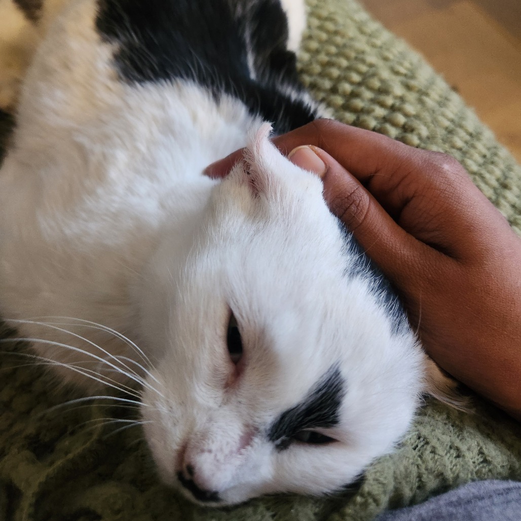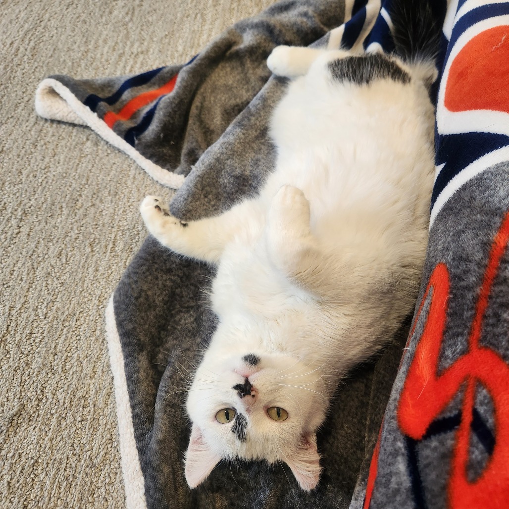 My name is Ainslie. I'm a young female cat with a soft, calm nature. All I want in this world is for someone to pet me and snuggle me. I'm going to be your shadow and follow you around everywhere, hoping that I can get a few head scratches and kisses along the way. I get along very well with the resident cats, so I'd do great in a home with another cat friend to bond with. I haven't been exposed to dogs. I have no problems using the litter box and have great litter box manners. I did come into care with tummy issues (i.e. diarrhea), so I'm on gastrointestinal food that has been working wonders for me. I may need to stay on this diet as other adult cat food makes my tummy feel funny. I'm not an overly active kitty and I enjoy quiet spaces to nap. After nap time, a little cuddle sesh is always ideal. If you like what you're hearing and want a cuddly, loving companion, please apply for me. I look forward to meeting you.