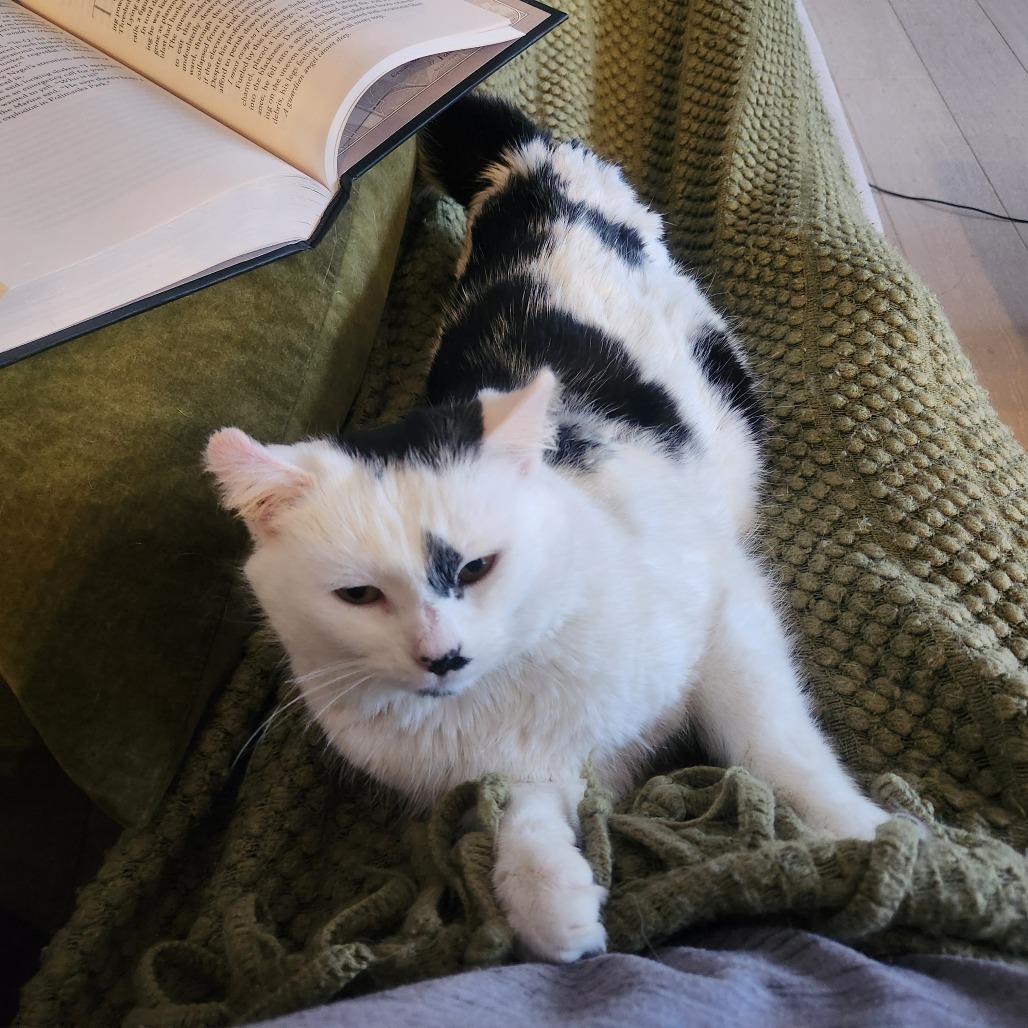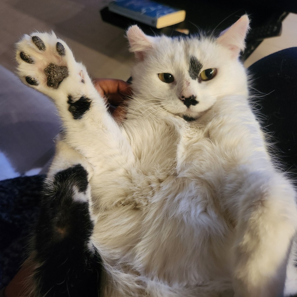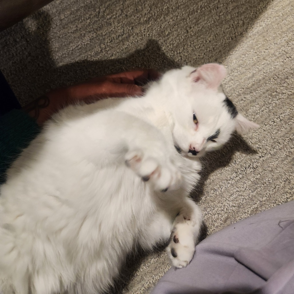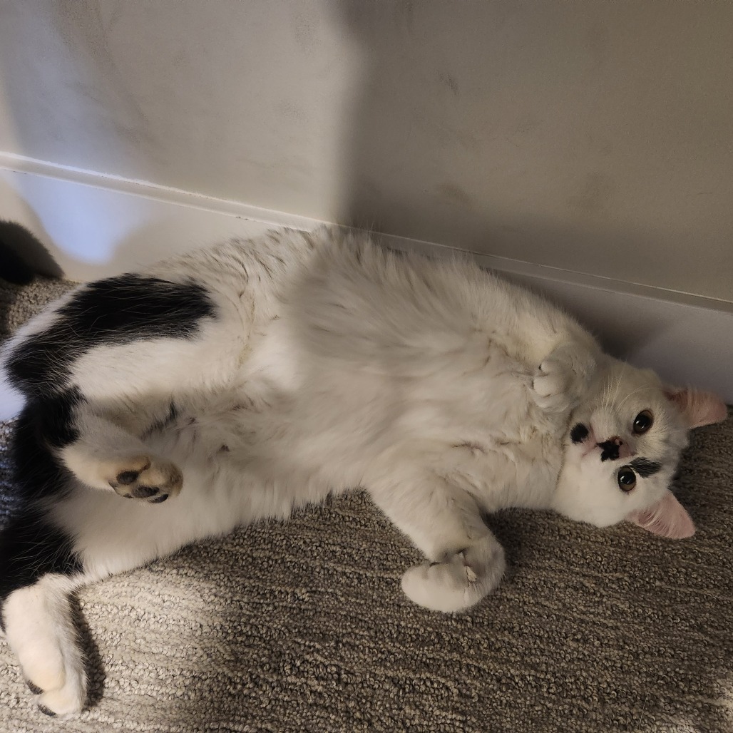 My name is Ainslie. I'm a young female cat with a soft, calm nature. All I want in this world is for someone to pet me and snuggle me. I'm going to be your shadow and follow you around everywhere, hoping that I can get a few head scratches and kisses along the way. I get along very well with the resident cats, so I'd do great in a home with another cat friend to bond with. I haven't been exposed to dogs. I have no problems using the litter box and have great litter box manners. I did come into care with tummy issues (i.e. diarrhea), so I'm on gastrointestinal food that has been working wonders for me. I may need to stay on this diet as other adult cat food makes my tummy feel funny. I'm not an overly active kitty and I enjoy quiet spaces to nap. After nap time, a little cuddle sesh is always ideal. If you like what you're hearing and want a cuddly, loving companion, please apply for me. I look forward to meeting you.