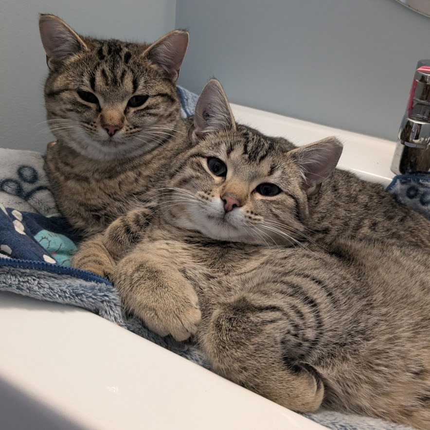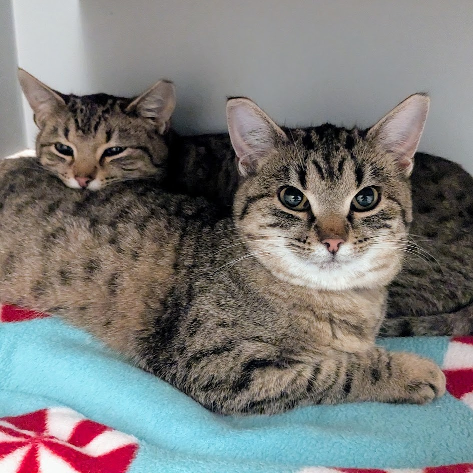 Hi there, did I hear someone say they're looking a sweet, soft, bonded pair of girls?! Then that's me and my twin sister! My fancy name is Magnolia, but folks call me Maggie. My sister is Acacia (or Casey), and we love to be close to one another and do everything together. We came from an outdoor situation and weren't too sure about interacting with people at first, but we're getting the hang of it. A warm comfy place to sleep, gentle touches and plenty of treats have helped to build our trust. I purr when the people are nearby and have started to explore my foster home and play with my toys. I have outrageously soft fur and I'm discovering that it feels good to have the humans run their hands across my shoulders and back. My nature is sweet and gentle, and foster mom is sure that with time and patience I'll form a close bond with my special people. I'm a litter box pro, and enjoy using the scratching post too. A calm home would be best for Casey and me, where we can continue to build our and confidence. We haven't met any other cats or dogs yet, so we're not sure about them. Let's spend our futures together!