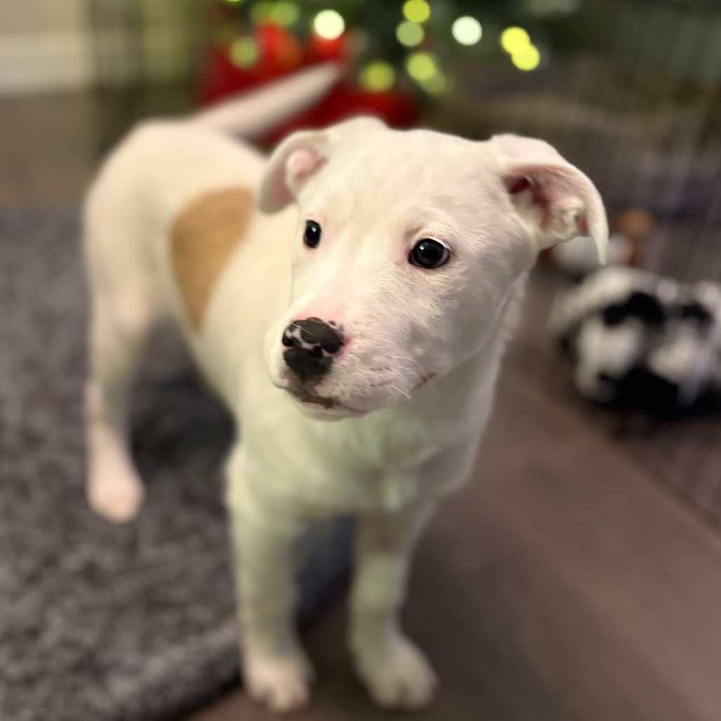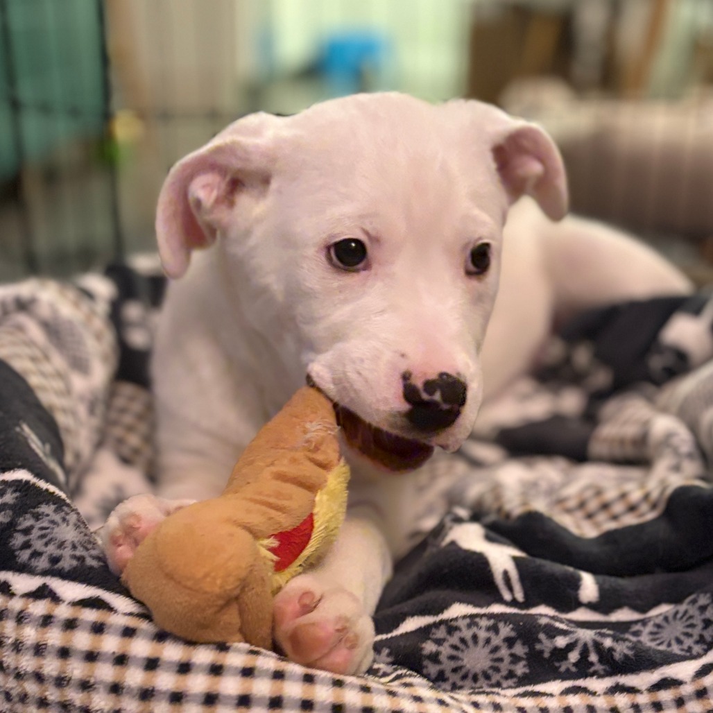 I’m sweet and super playful. I like playing with toys, dogs, humans or just myself. I'll chase, tug, and climb on the big dog. I just like to play. I am really starting to come out of my shell.