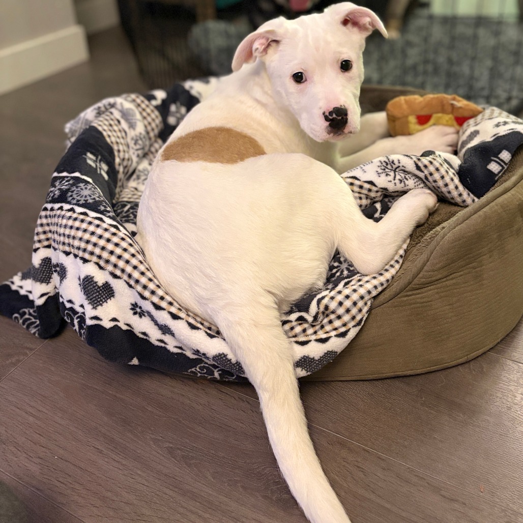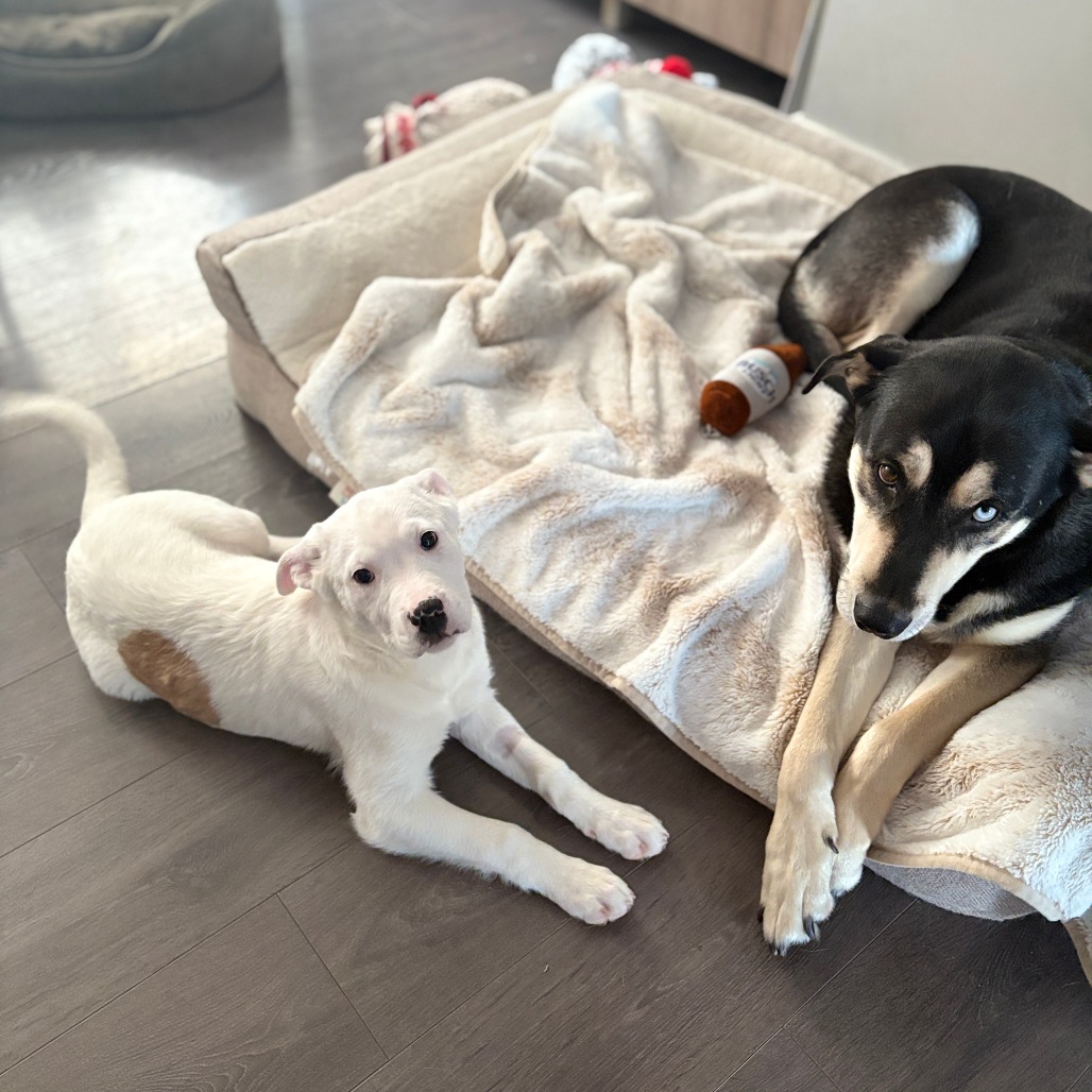 I am doing a good job potty training, sleep well in my crate at night, and I do well in my crate when the humans are away. I love my cuddles too! Human cuddles, dog cuddles, I’ll take them all.