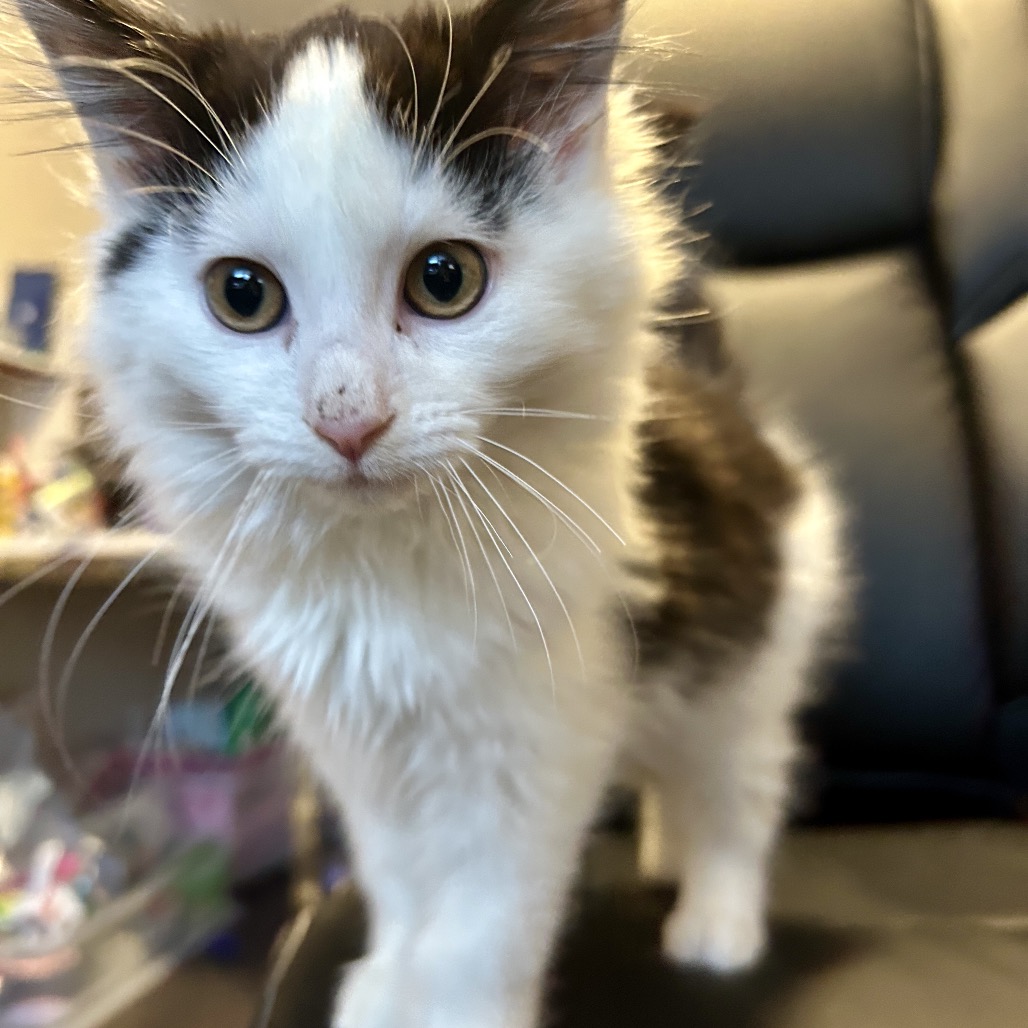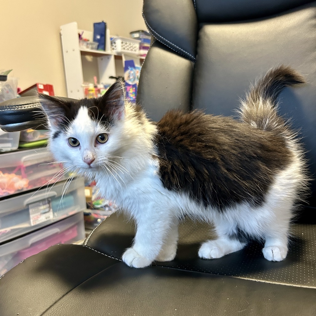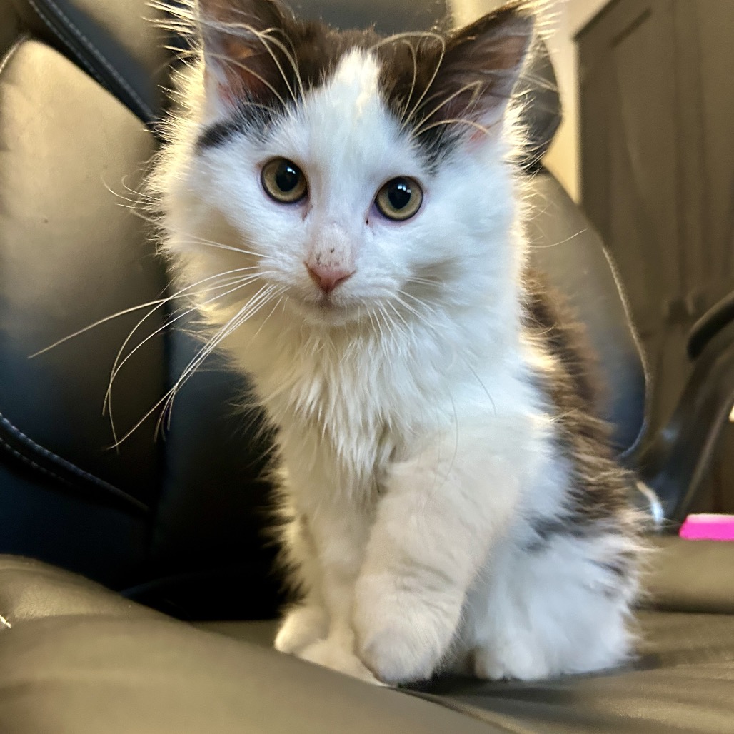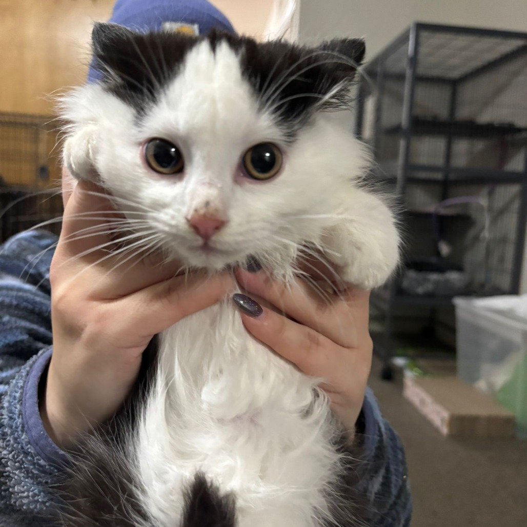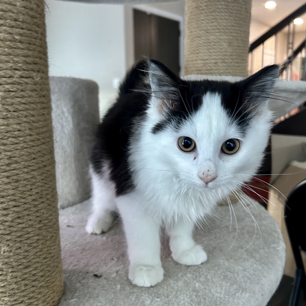 Hi there! My name is Shark Bait, from the Finding Nemo litter, and I’m a fluffy black-and-white kitten with a gentle soul and a heart full of love—once I get to know you.