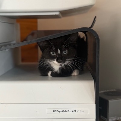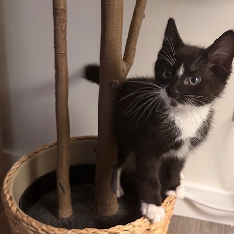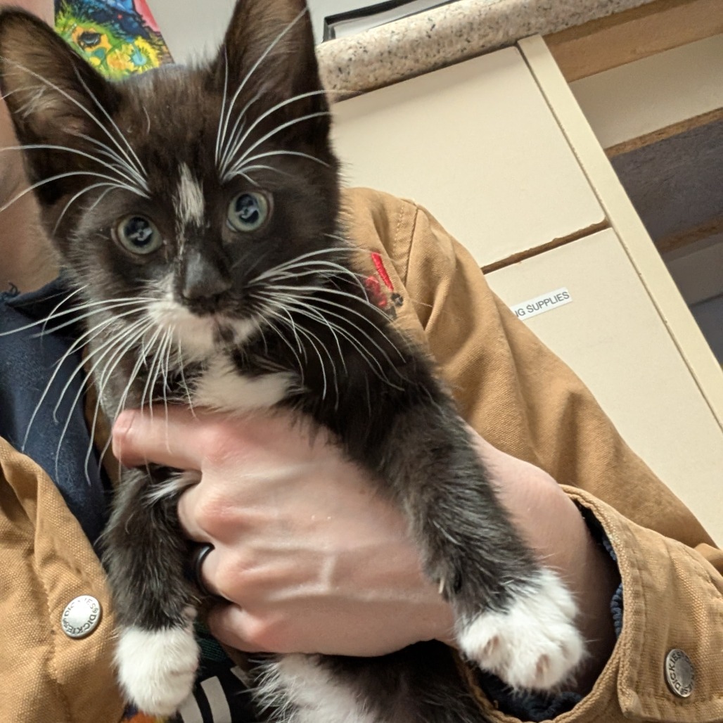who enjoys kitten energy and a good cuddle buddy. I'm playful, social, and full of fun, but I also have a sweet, and gentle side. I'm doing great with my litter box (I'm a very good boy:) ), and I get along really well with the resident cats. Dogs still make me a little nervous, but I tolerate them and am learning every day.