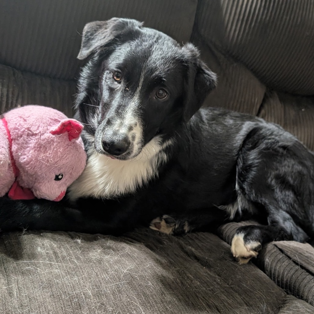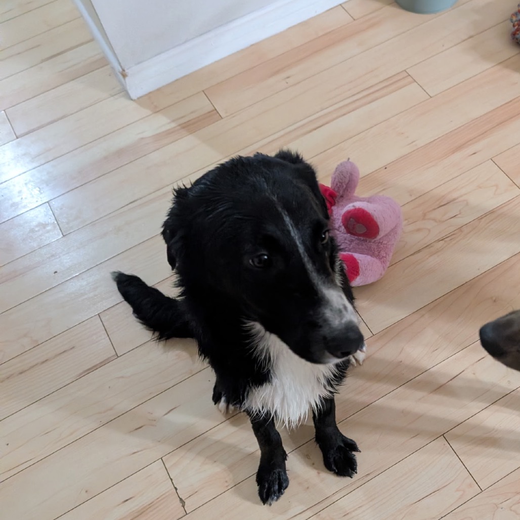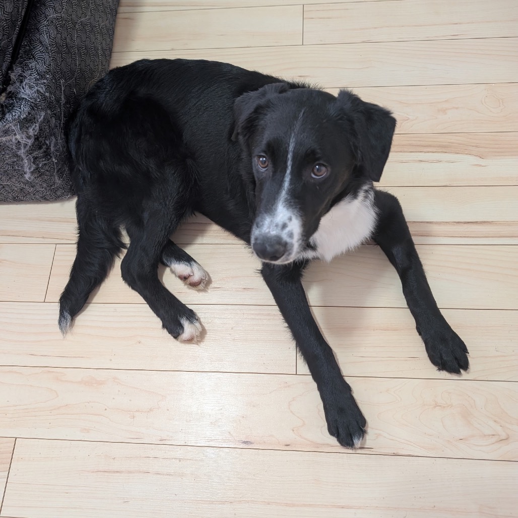 In my time with my foster family, I have learnt how to walk on a leash, go up and down stairs, and am close to being potty trained. I like to play with my foster sister and herd my foster cat friends, but more importantly I like to lounge around with my foster mom. I like her very much and follow her around everywhere, even when there are distractions.