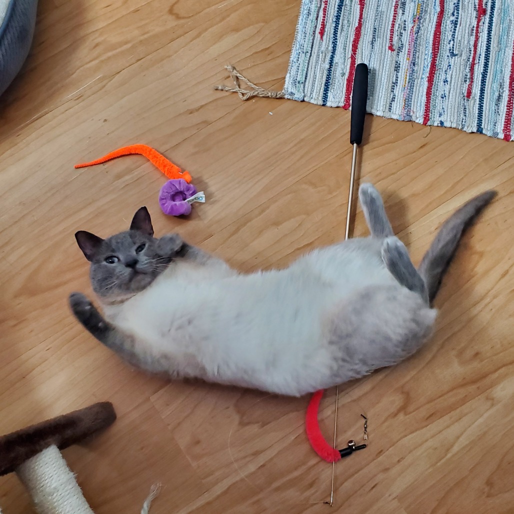 I would not be the best fit for a home with young kids--although I throw myself into cuddles, I can sometimes get overstimulated, or forget that you're not another cat I can give love bites to. I need humans who can watch for my cues and calmly but firmly tell me "no" and redirect me. I would likely thrive with another friendly, playful cat. (Key word: friendly. If other cats are mean to me, I will not roll over and take it!)