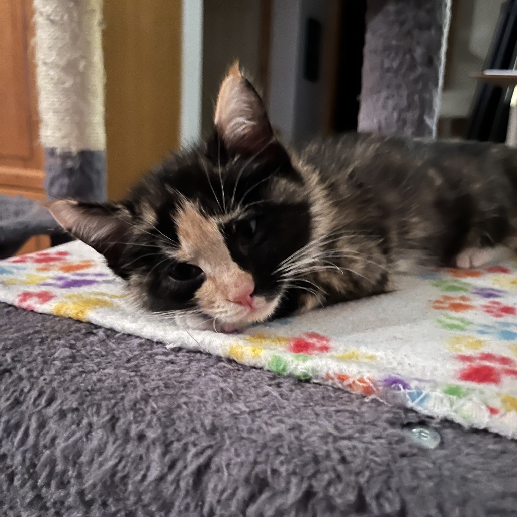 Lake is a sweet, cuddly, and playful girl who loves spending time with her people. She does well with other cats and has met a dog — she was a little unsure but would likely do fine with a slow, proper introduction. Lake is ready to find a loving home to call her own 💛