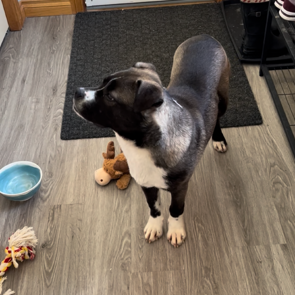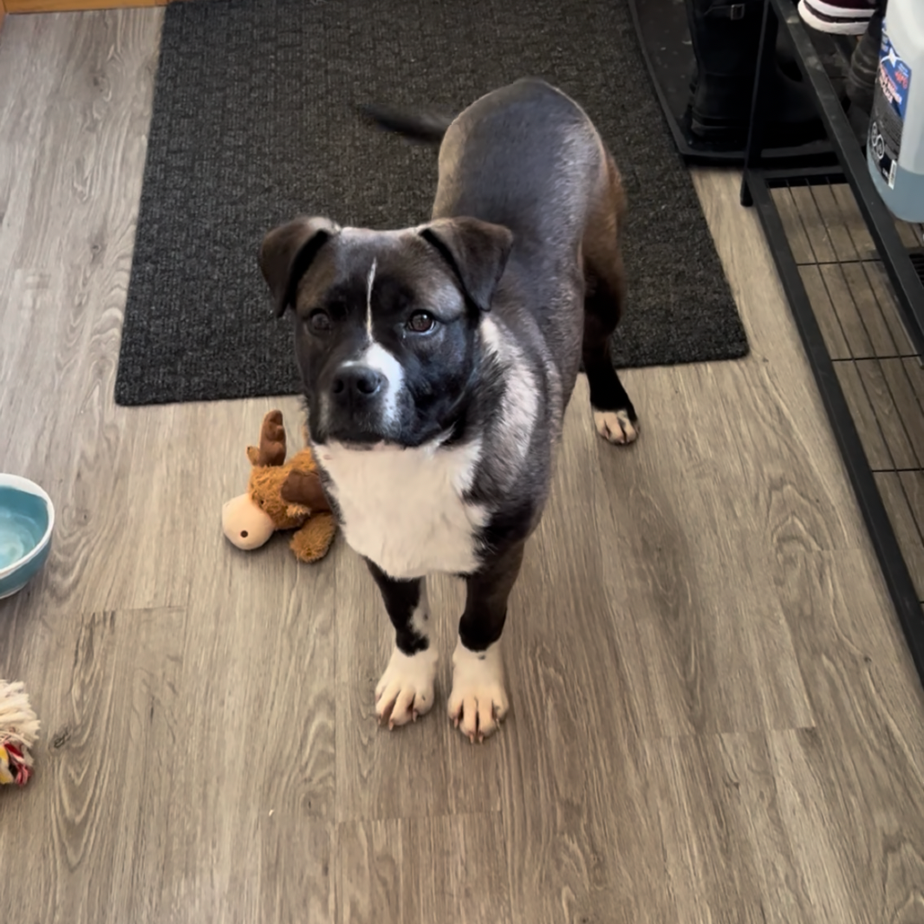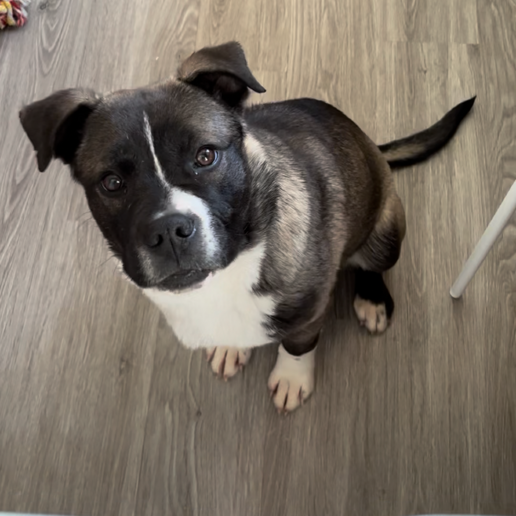 North is a sweet, loving boy with gentle eyes and a big heart. He’s already learned to sit and is eager to please, soaking up new skills with his people by his side. North has been around cats in his foster home — he can be a little unsure at first, but is doing well with calm, slow introductions. He loves being close to his humans and would thrive in a home ready to give him patience, love, and plenty of cuddles.