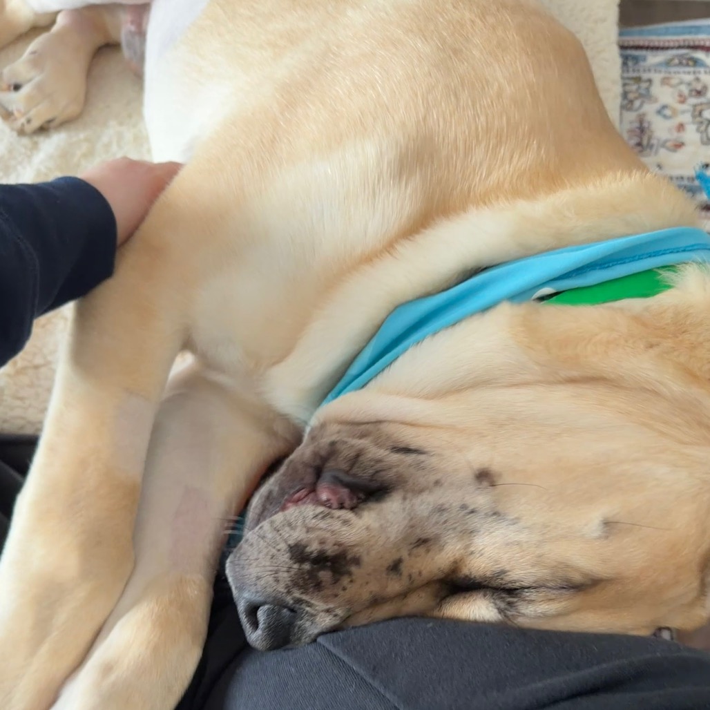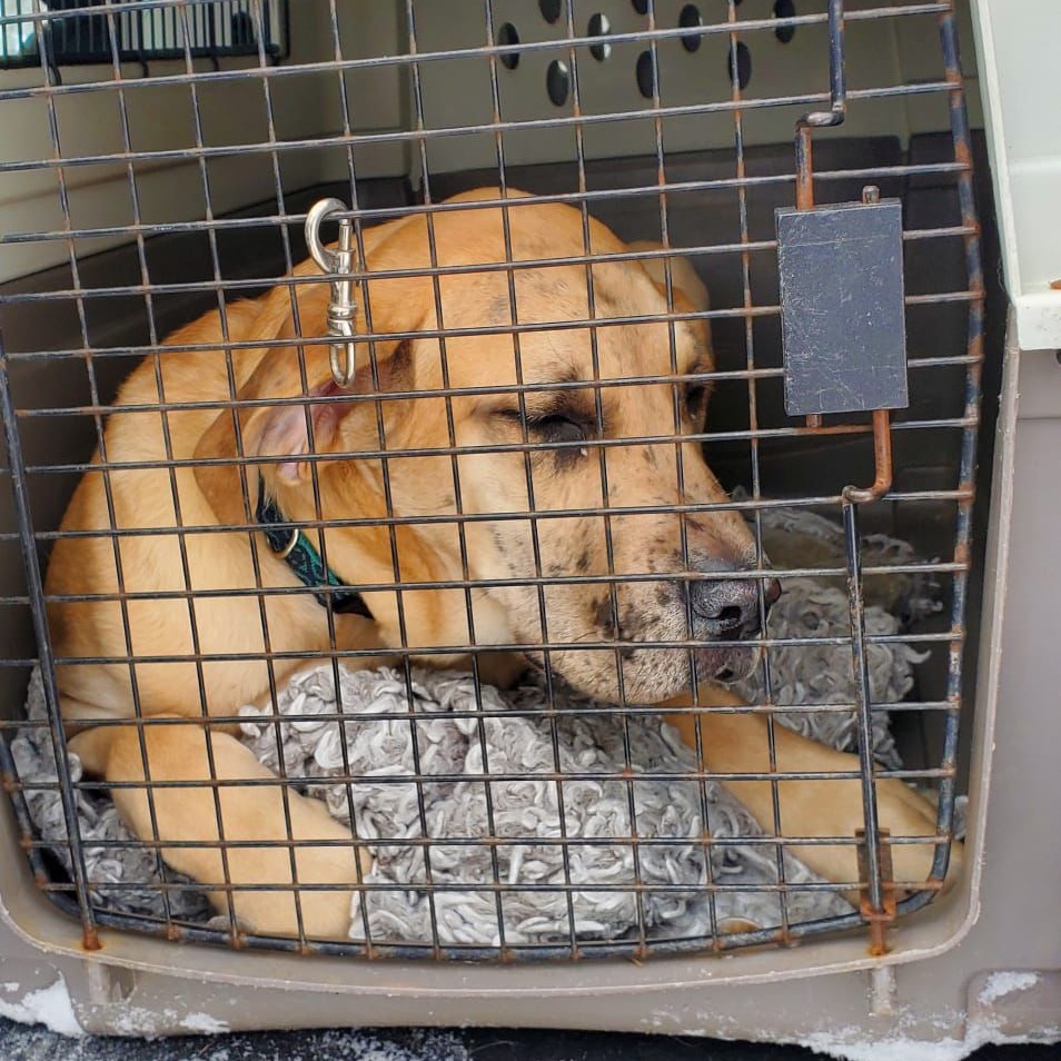 Radley is crate trained and does amazing in his space—he actually loves his big crate and settles in without a peep. He’s also fully house-trained and only goes outside to do his business like a good boy.
