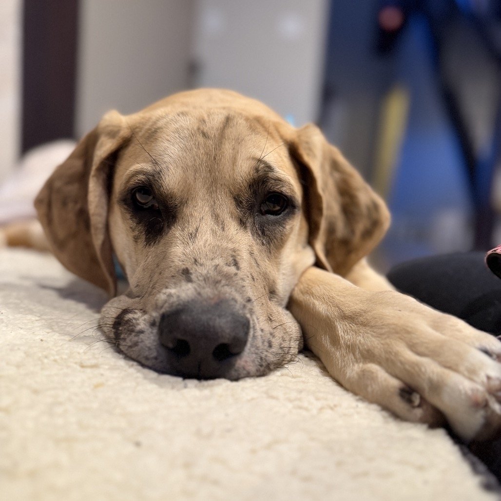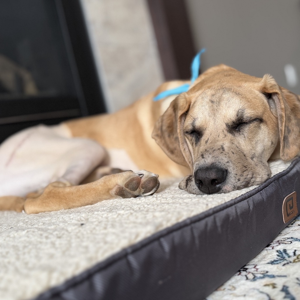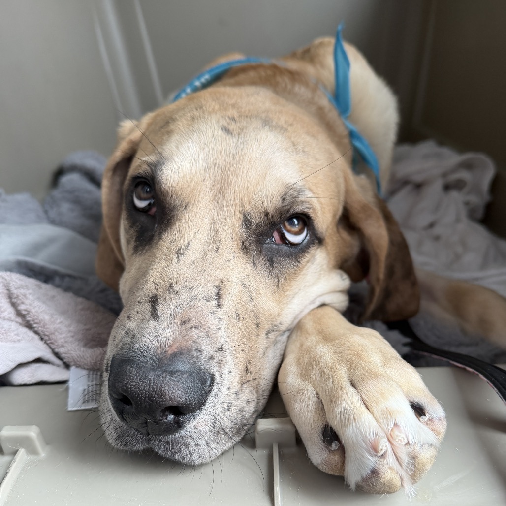 Radley is a sweet Great Dane mix puppy with a heart as big as his paws. This handsome boy has had a tough start in life after being hit by a car and undergoing hip surgery, but you’d never know it from his loving nature. He’s full of personality and charm. He’s a true survivor who’s ready to find the forever home he deserves.