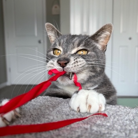 Zepyh has his adoption fee sponsored. Someone loved him so much that they want you to use this money to set him up for success! Sponsored by Dione. My owner passed away and now I’m in the hands of SCARS. I’ve taken this big life change in stride. I seem to thrive with routine and have now settled into my foster home quite well. My ideal day starts with a nibble of dry food and then I like to cuddle up on a warm lap for a snooze. I love cuddle time with my humans! Once I’m recharged, I get the zoomies and want to play. Even though I’m a senior boy, I’m pretty agile and enjoy a good play session. I hope to find a loving home where I can enjoy my golden years.