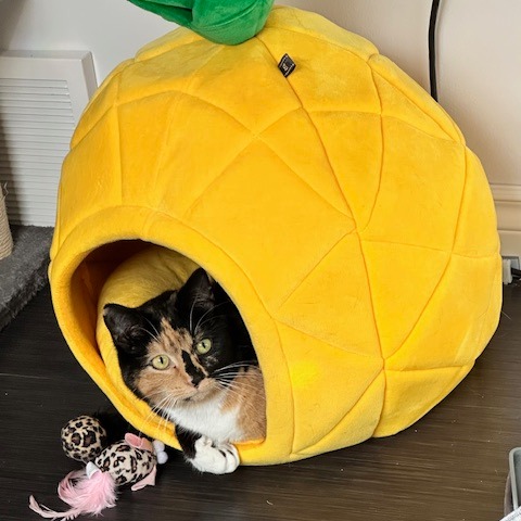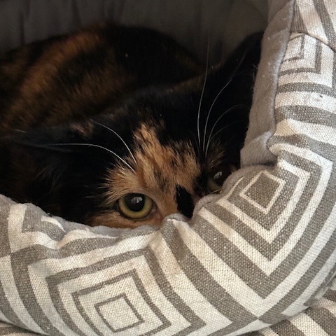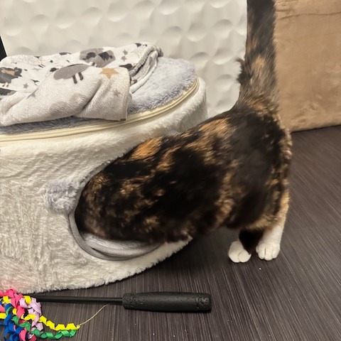 Now we know that with more time and patience, Rachel will be an amazing addition to the right home. She is still unsure about humans and prefers to observe from a safe place, but when you move slowly and reach out to pet her, she closes her eyes, leans into your hand, and rewards you with the quietest little purr.