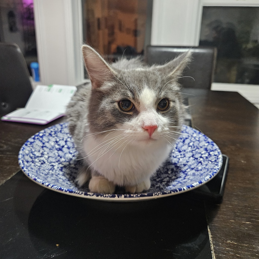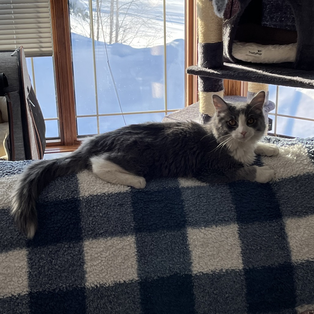 He’s also quite the talker and loves being part of the action. With his incredibly soft fur, playful energy, and outgoing nature, it’s no surprise even the vet called him “a handful!” Mr. Grey thrives on interaction, play, and staying busy.