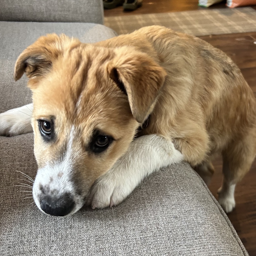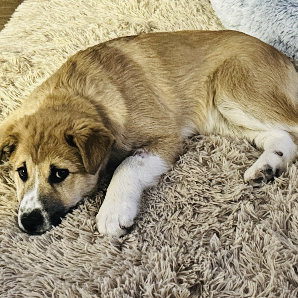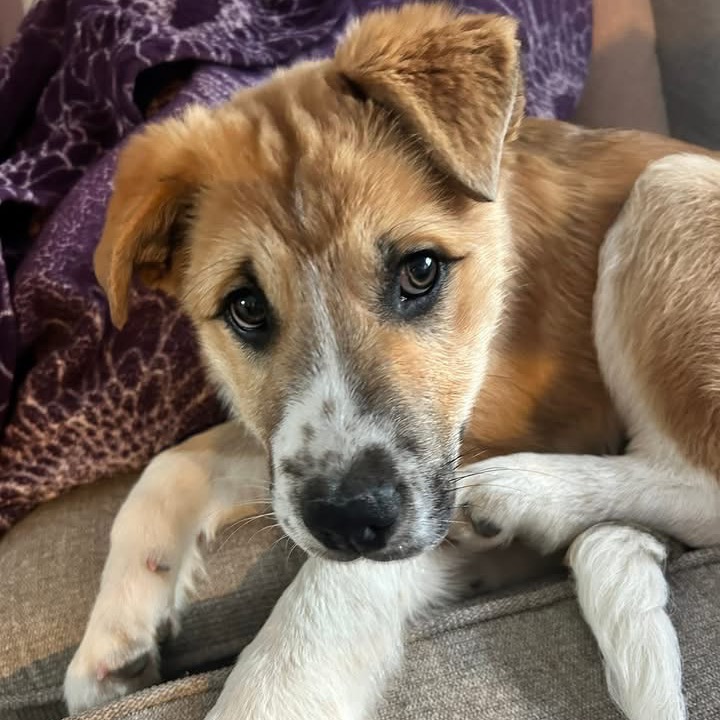 Hi!! I’m Caspian, and I’m on the hunt for my forever humans. I’m a curious, wiggly pup who thinks the world is a pretty exciting place. I love sniffing around to see what’s going on, bursting into random puppy zoomies when I get extra happy, and—my absolute favorite—following my humans around everywhere and curling up for cuddles whenever I get the chance. I’m doing really well with potty training and walking on leash, and I’m learning more every day about being a great pup.