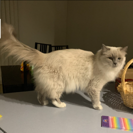 Noodle is quiet and private. She likes to sleep on soft blankets and on elevated surfaces. Sometimes on but usually under your bed. She is tolerant of other dogs and cats. She will seek attention on her own terms. Call you from the hallway and ask you to come watch her eat. She enjoys being brushed on her cheeks, her head, chest, sides, and back, but not the stomach or tail . She is independent. Plays with springs, catnip mice and ribbon toys. I do not recommend families with young children who cannot resist the urge to pick her up. Or noisy dogs.