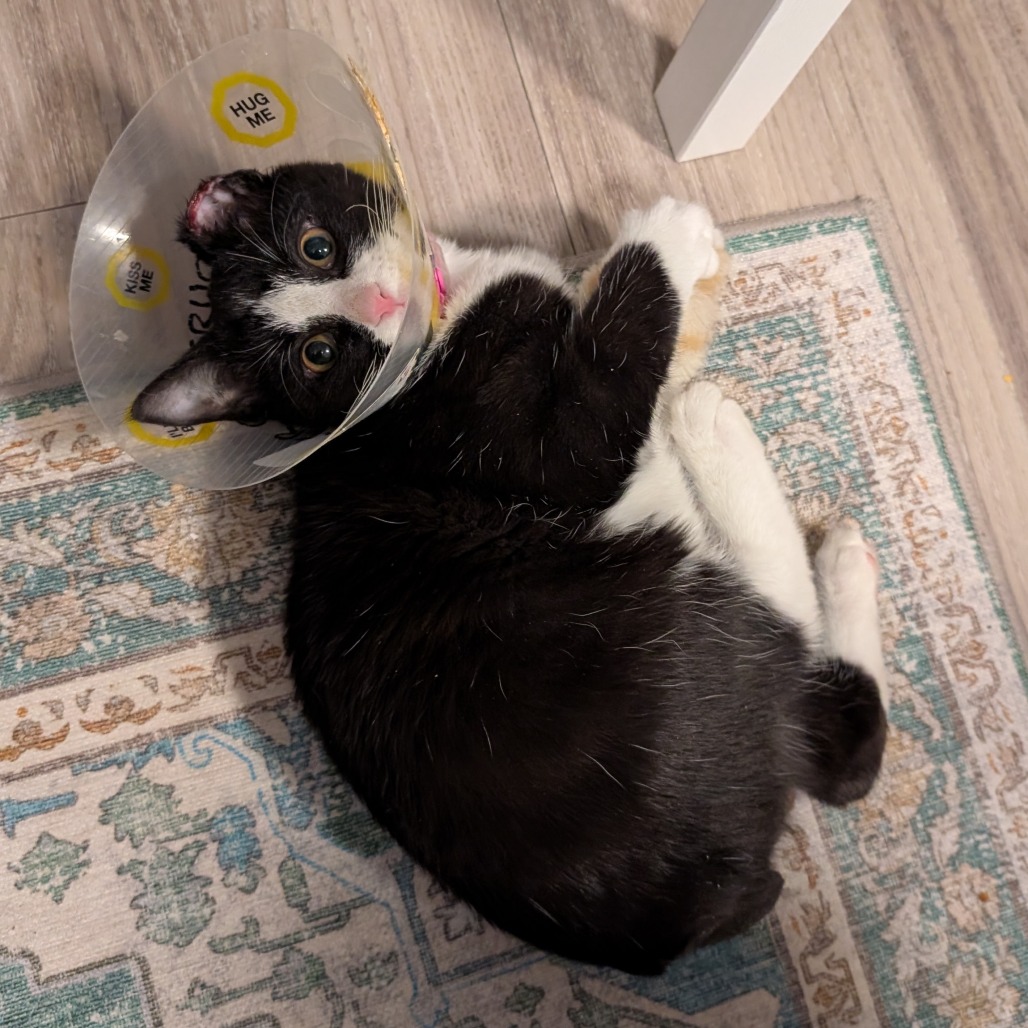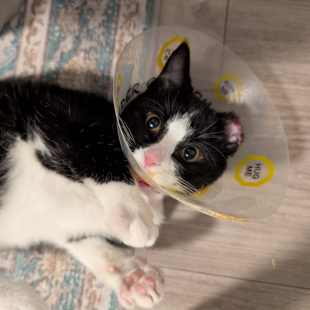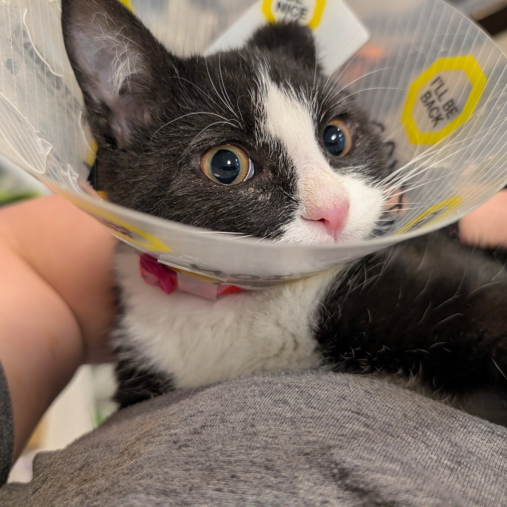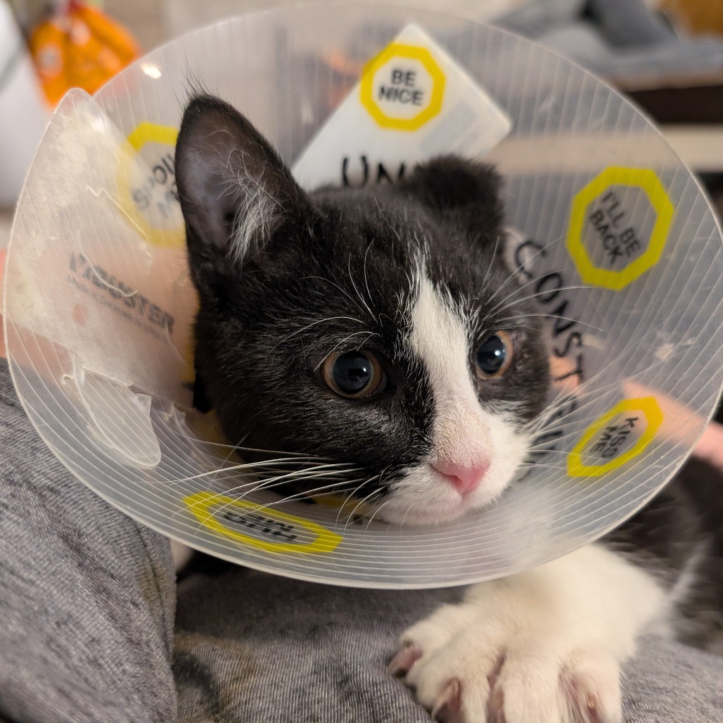 I lost most of my tail and half of an ear due to injuries I had when I was found, but that doesn’t stop me from running around and being a rambunctious little guy. I’m a bit clumsy, but that might just be because I’ve been wearing a cone to keep me from messing with my ear and tail while they heal. I’ll thrive in a home with plenty of attention and possibly another lively kitten to play with. I’ve been neutered, microchipped, and vaccinated. Now that I’m mostly healed, I’m ready to start looking for my furever home. Am I the guy for you? Apply to meet me.