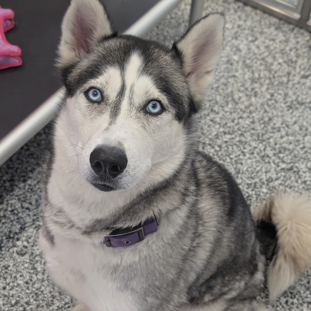 Hi, my name is Calista (Cali). I initially was adopted from a high-kill shelter in California, but ended up being too much for the other dog in the home, so SCARS took me in. I am a beautiful husky around 3 years old. I have been told that I have the most stunning ice-blue eyes. I am an active girl and like playing with other dogs I am familiar with. I walk well on a leash with a halti. I have lots of energy and will need an active home, preferably with a larger male dog buddy. Like most huskies, I like to go to the bathroom in a certain place. Please take the time to initially let me out and show me where to do my business. I am a quick learner and I know how to sit, stay and shake a paw. I am very curious and like to explore. I love to be with my people. I travel well in the vehicle. I can be a bit mouthy, so older kids (10 years +) would be best. In my previous home I did show some resource guarding with food and I was known to escape if a gate was left open. What do you think? Could I be a match for your family? If so, fill out an app. If not, tell your friends about me!