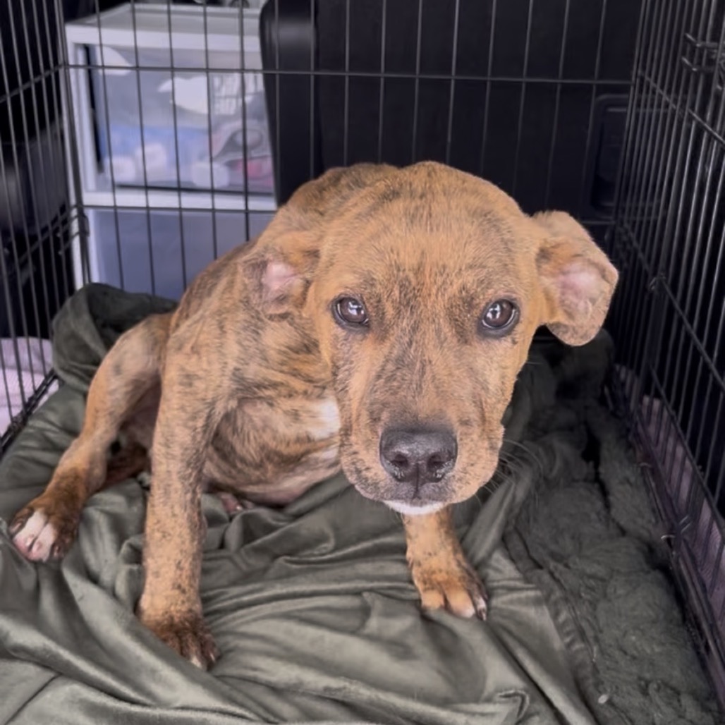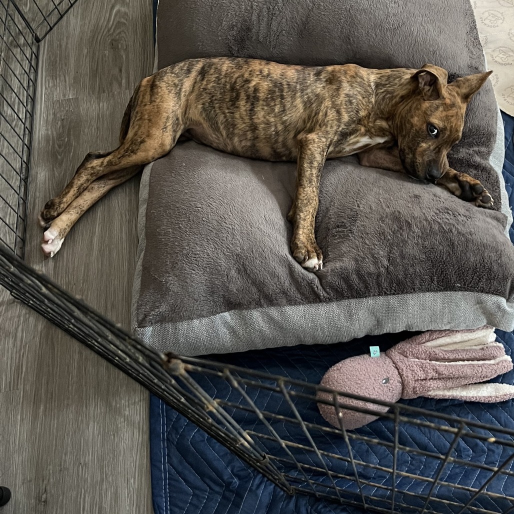 He does well with other dogs and has been around cats, though he’s still learning to respect their space. Tanner is crate trained and almost fully house trained, with just a few accidents as he continues to learn.