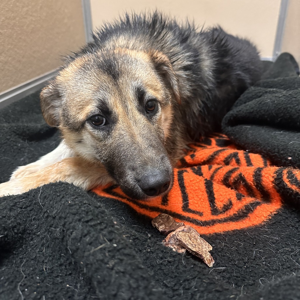 I’m a gentle, timid soul who just needs time, patience, and a kind heart. New places, new people, and loud noises can make me unsure, so I tend to hang back and watch quietly. I love watching the world from my kennel which is my “safe” place since I came into care. But if you move slowly and speak softly, I’ll start to feel brave enough to come a little closer.
