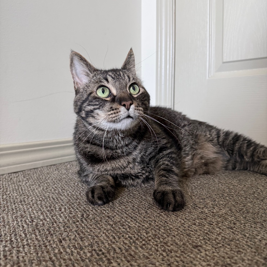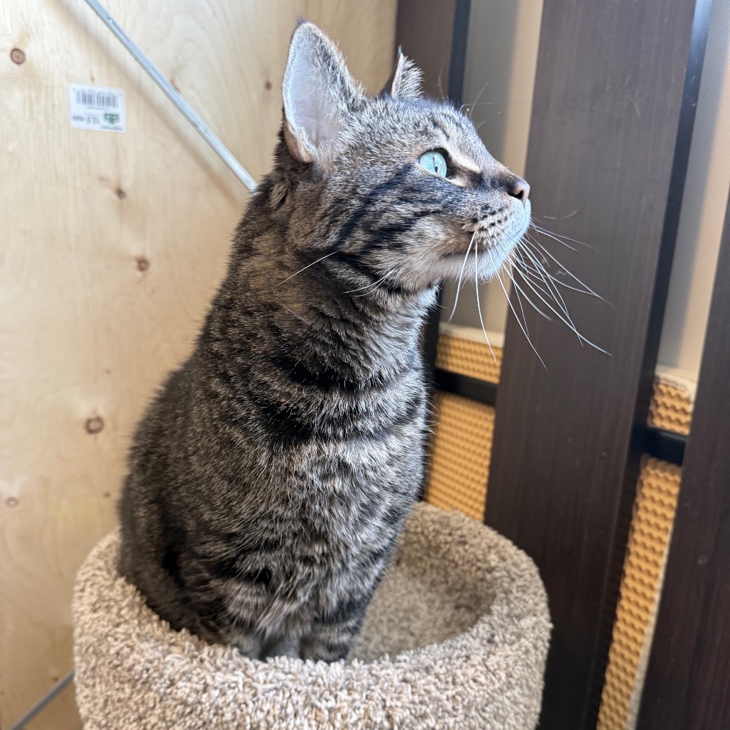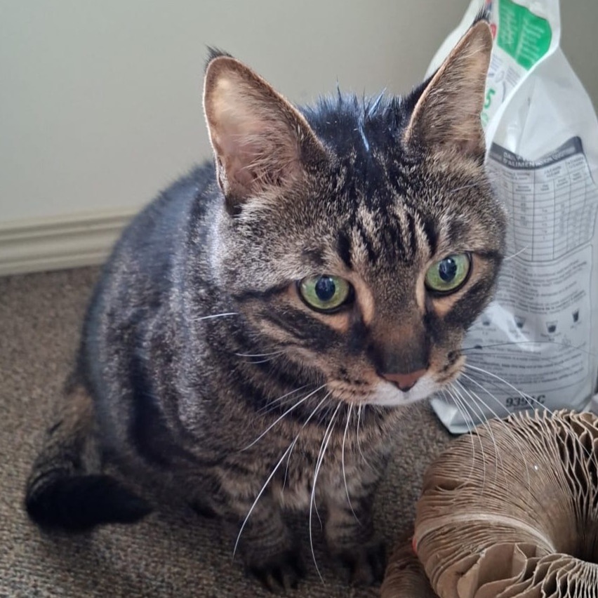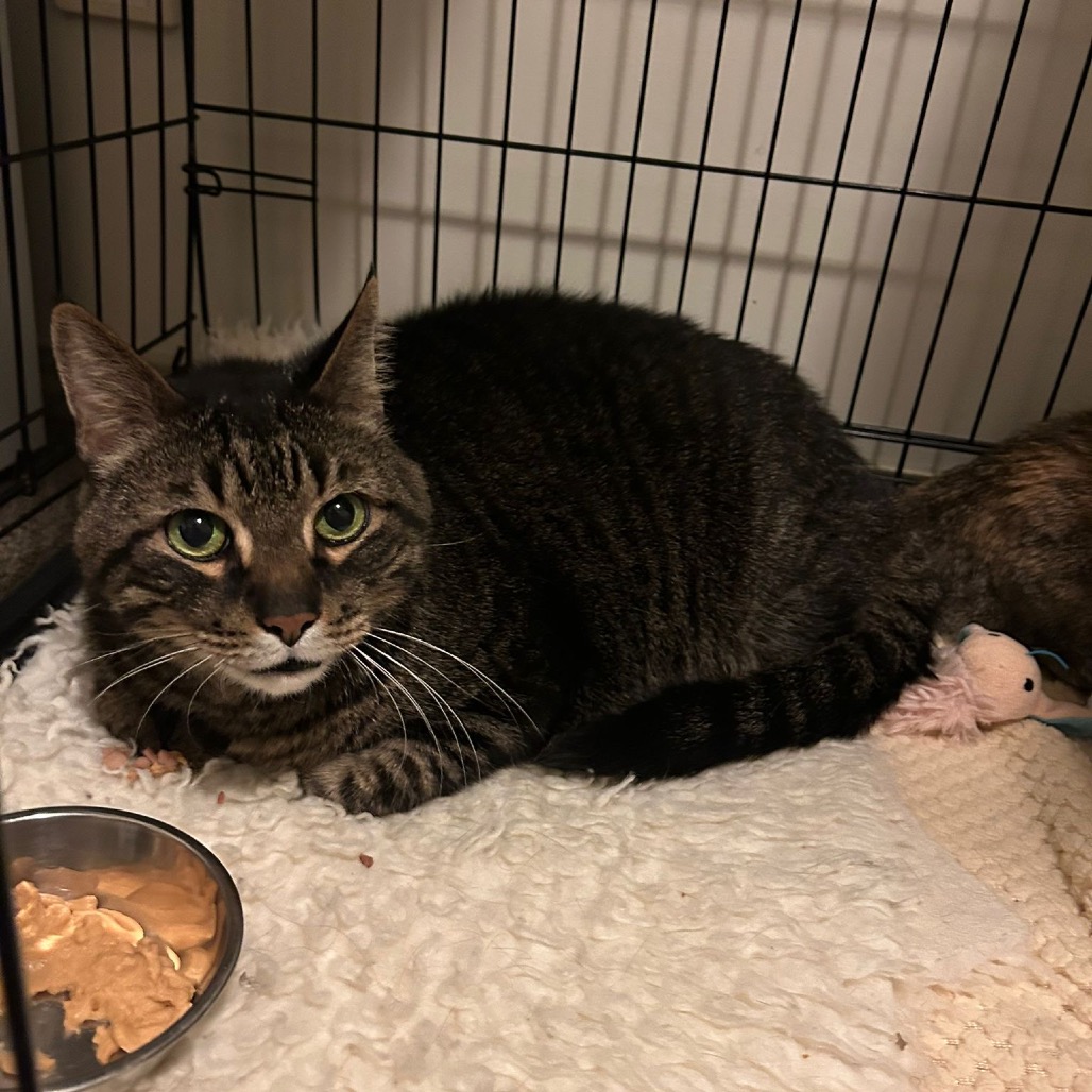 Mr. Kitty is incredibly friendly and affectionate, the kind of cat who genuinely enjoys being around his people. He loves attention and will happily soak up all the pets, cuddles, and companionship you’re willing to give. If you’re sitting down, don’t be surprised if he’s right there with you, ready to keep you company.
