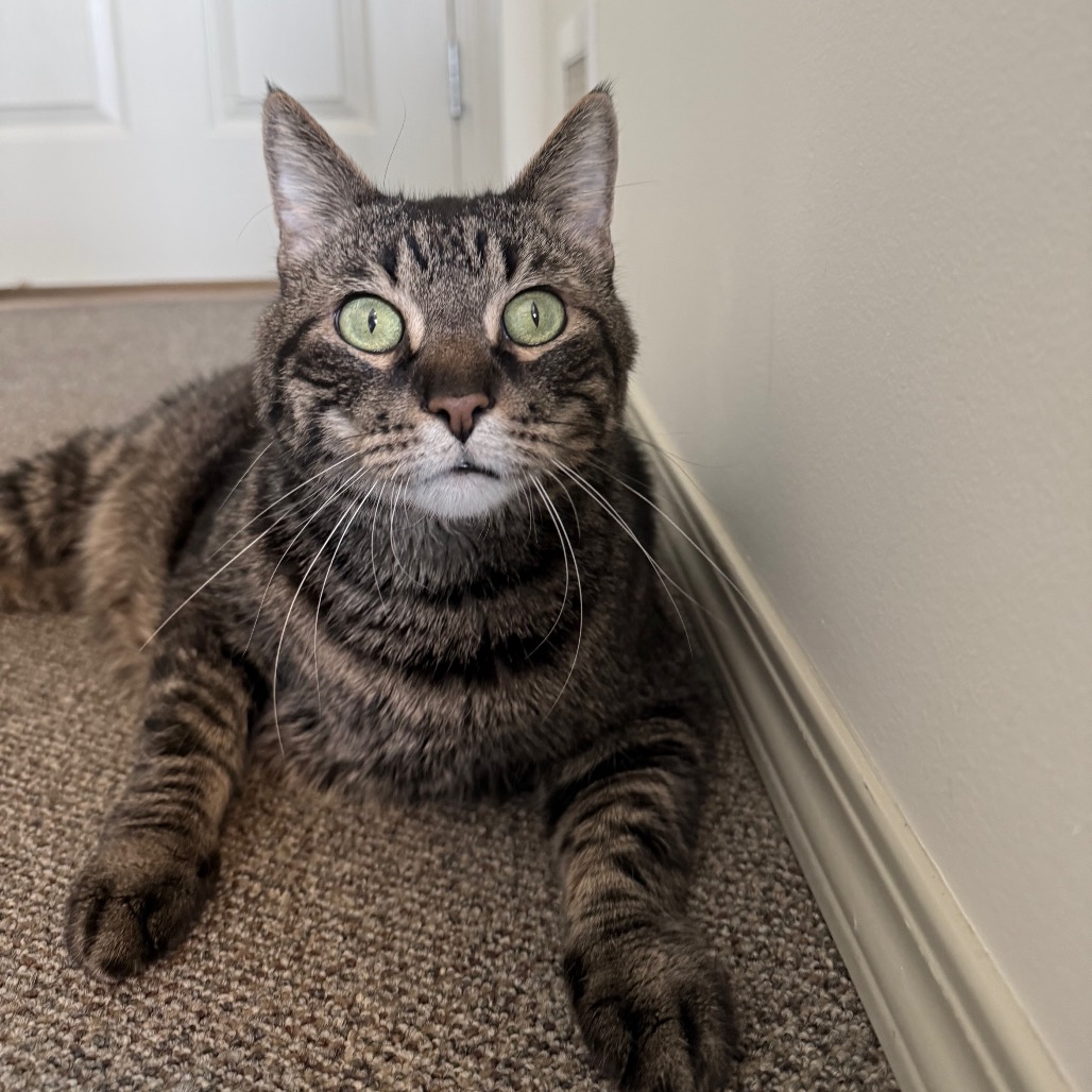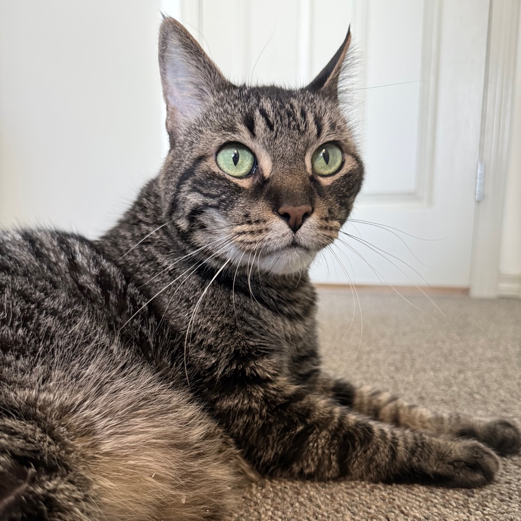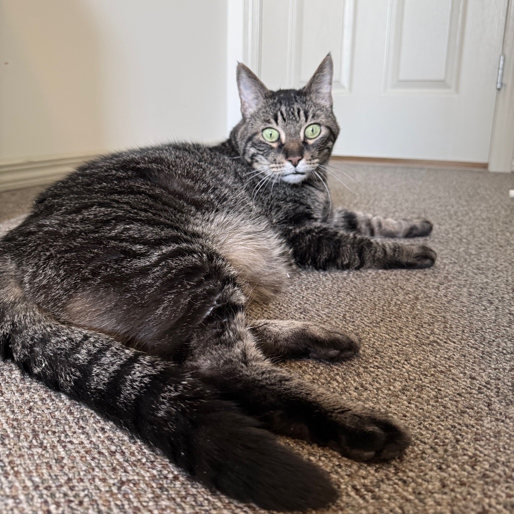 Mr. Kitty is incredibly friendly and affectionate, the kind of cat who genuinely enjoys being around his people. He loves attention and will happily soak up all the pets, cuddles, and companionship you’re willing to give. If you’re sitting down, don’t be surprised if he’s right there with you, ready to keep you company.