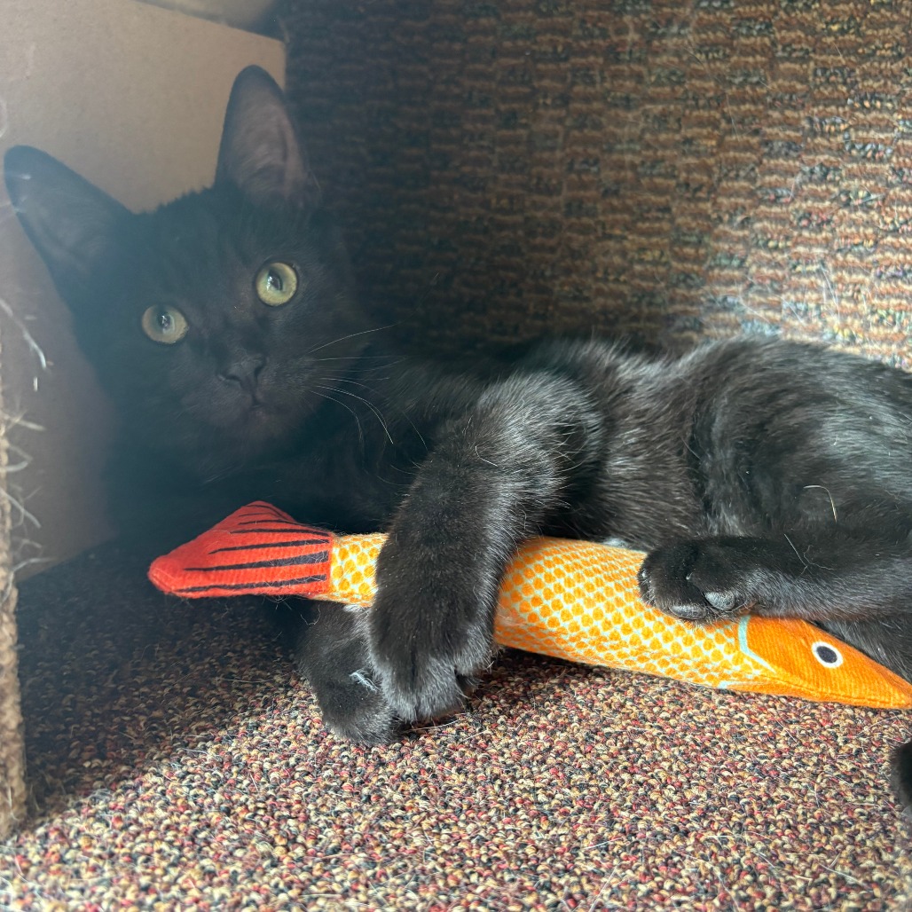 I absolutely love playing with my humans whether it’s chasing toys, running around, or just being silly, I’m happiest when I’m playing with someone. I’m not scared of other cats or dogs, though I might need a little time to warm up. Once I do, I’m a great companion to everyone!