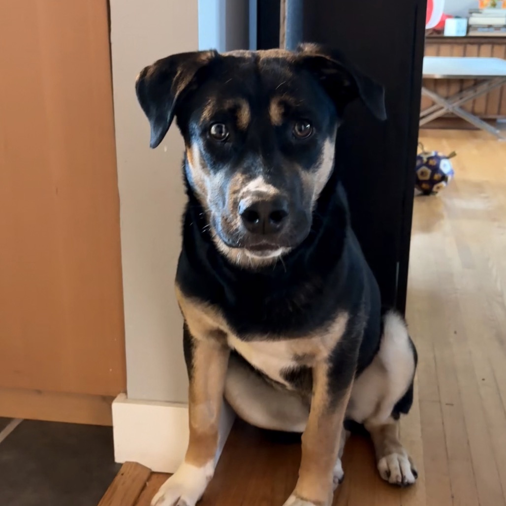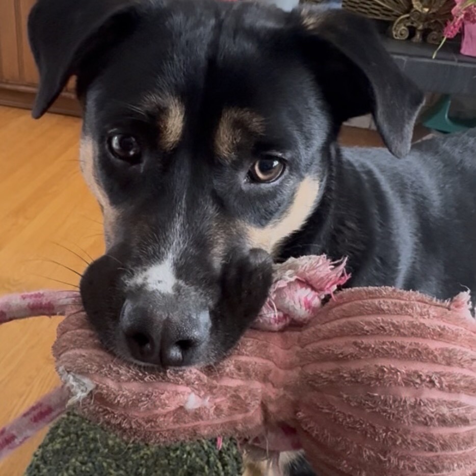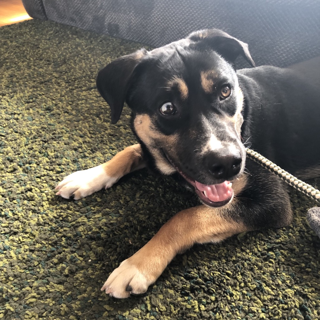 Hi, I’m Timbit! Don’t let my one, two coloured eye fool you, I can see you just fine! I am fairly new to SCARS, and am lucky to get right into a foster home and boy am I having fun! My foster brother, Buddy, tries to keep up with me, but being that I’m still a puppy, not quite a match for my energy. I am learning quickly how to be respectful though. There’s a couple felines in the house and they’re alright, not quite sure what they’re about yet, I am a bit curious, but on my best behaviour. My foster dad says I am doing very well learning to walk on a leash, some might even say I am almost a pro….almost I love my food and love my treats so if those are involved, I will do almost anything!! I quickly figured out this crate thing, no big deal for a smart pup like me. One thing I absolutely love to pets and cuddles. Just don’t stop, ok? If you are looking for a fun, loving, high energy pup to fill your home with all the love, hit the apply button below and let’s meet! ~ Timbit 🐾