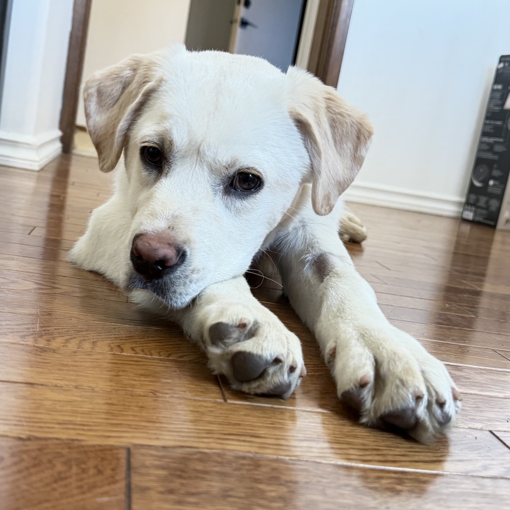 If you’re looking for a sweet, affectionate shadow who just wants to love and be loved, I think we might be a perfect match. I’m the kind of pup who’s happiest right by your side—whether that’s soaking up pets on the couch, resting at your feet while you work, or proudly chewing on my favorite toy nearby.