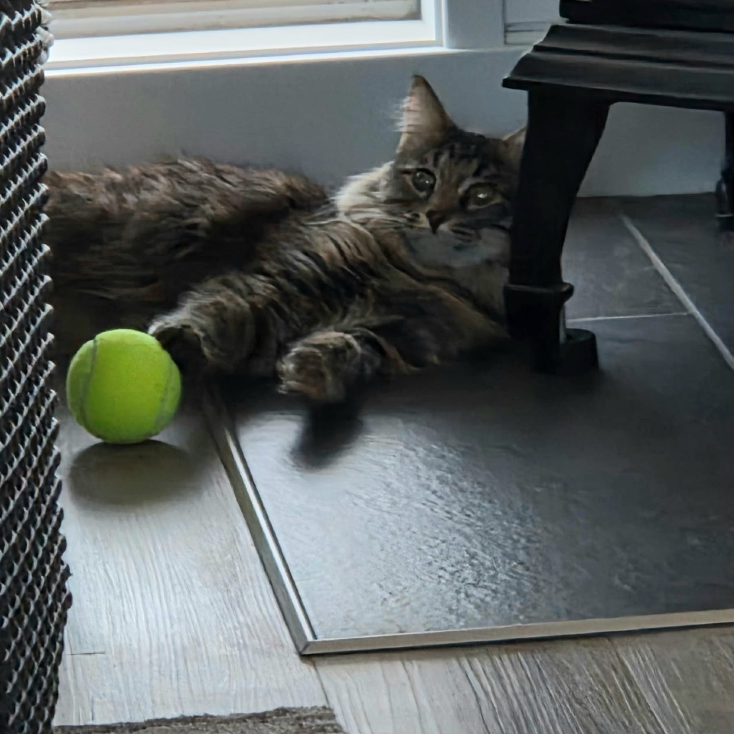 But don't let her angelic looks fool you. She loves to play with wand toys and dives into her tunnel to try and catch that darn laser light.