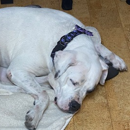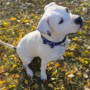 Hi there! I'm Darla, and I'm a Darlin'! I am full of love, affection and spots. I require multiple daily belly-rubs, but I give kind kisses in return, so its totally fair exchange. My house behaviour is excellent. I will follow you around and find a comfy place to lay when you stop. I am curious about new things and sounds. One day I heard a doorbell on tv and looked at every door for the guest. Or the time, I jumped in the bathtub because it looked interesting and learned shower curtains are confusing to operate, so I needed help escaping. Do you need a super good walker? Perfect because I’m a walking queen. I walk well on a leash and I’m respectful of all the other dogs, birds and bunnies we meet. My energy level can ramp up, but a Zoomie around the yard and I settle quickly. I have met a few kids, and I absolutely love them, but I can be a little jumpy, so I would do best with kids who are older than 10. I continue working on my obedience training and I’m staying well-behaved and happy. The best home for me has people who want to cuddle but who don’t have another animal. I get along with male dogs with similar energy as myself, so I play well with friends when the introductions are done properly. Let’s get together and practice cuddling. Hit that adopt button and come and meet me!